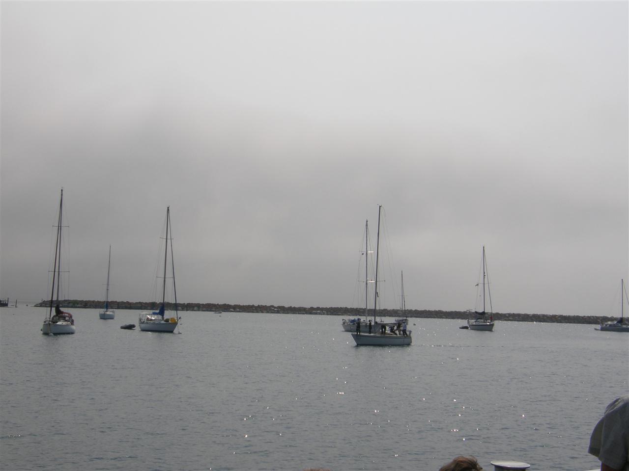 Several sailboats making their way into the harbor...