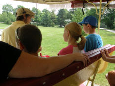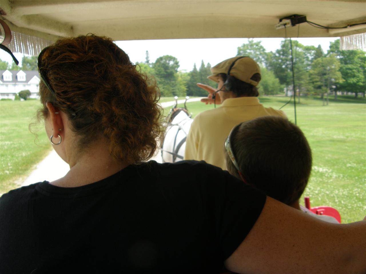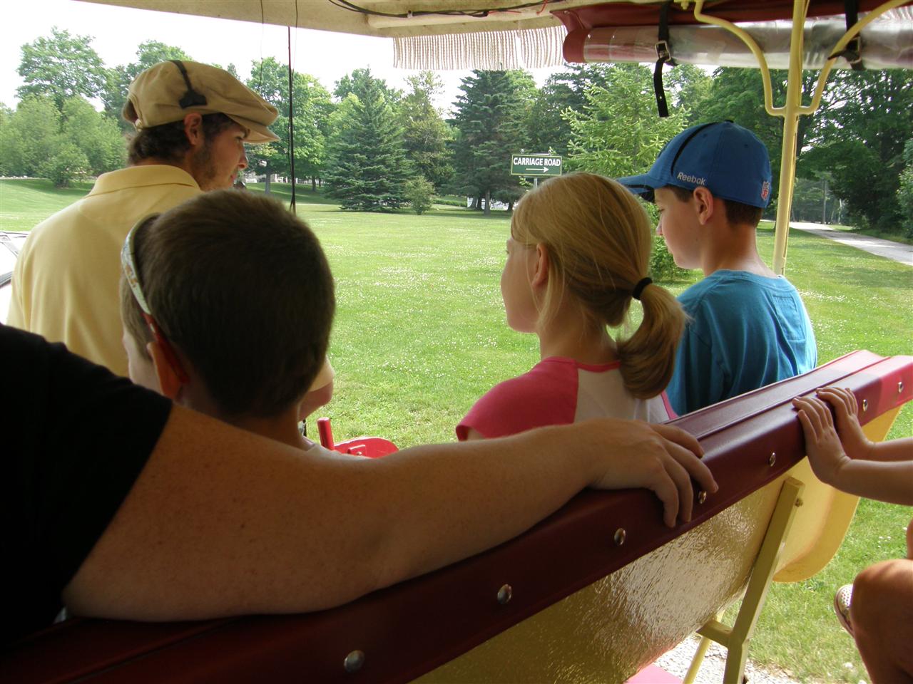 Tyler, Tara, Drew, and Jayden on the carriage, with Grandma