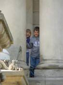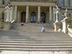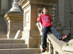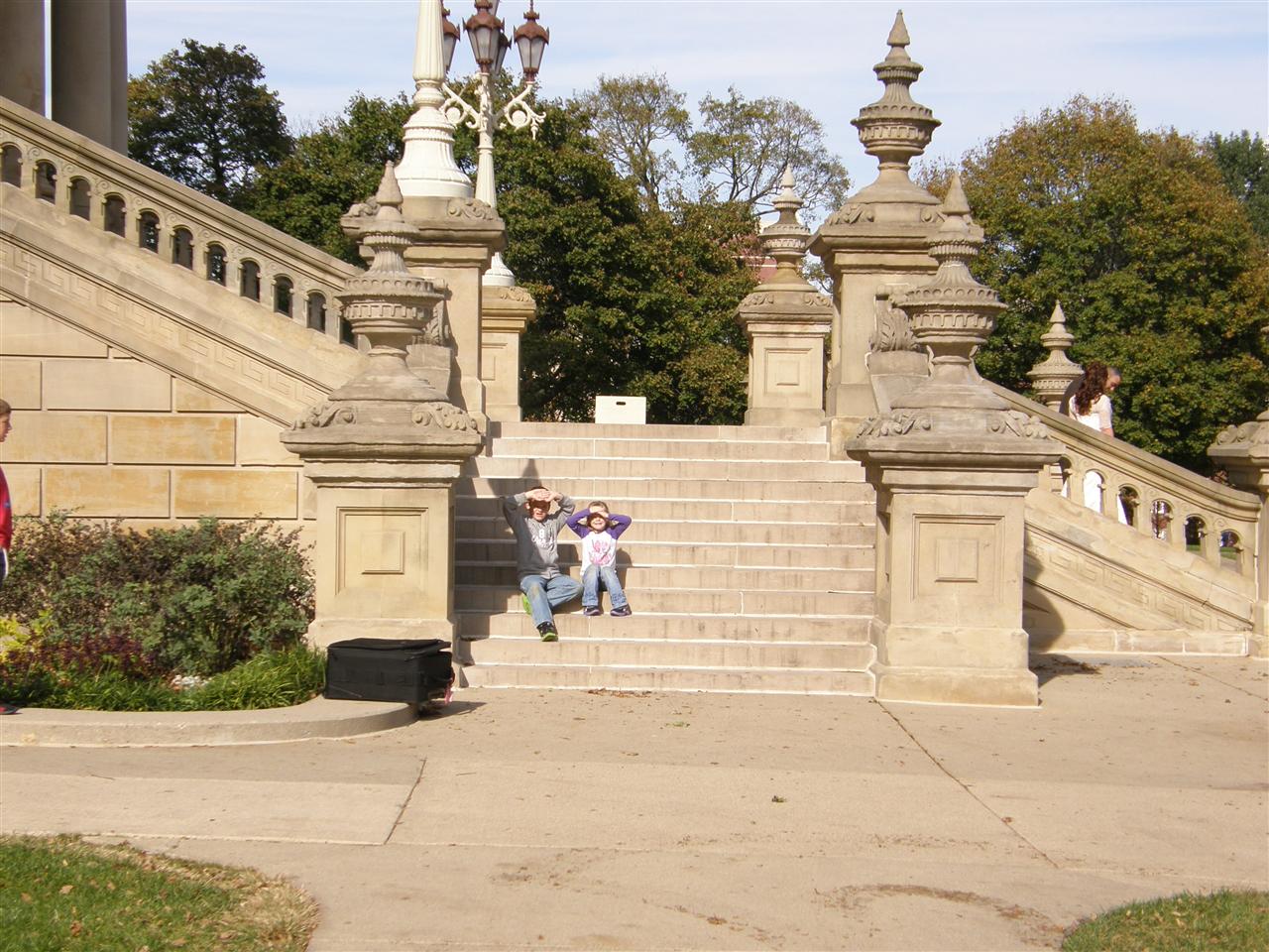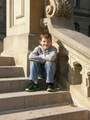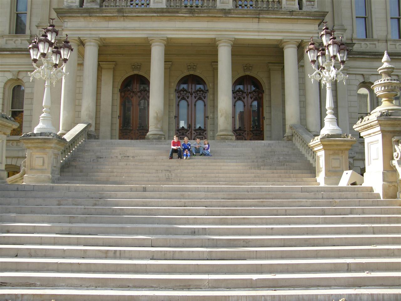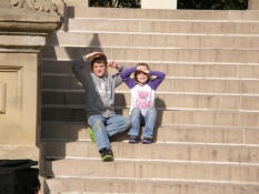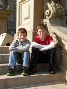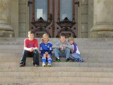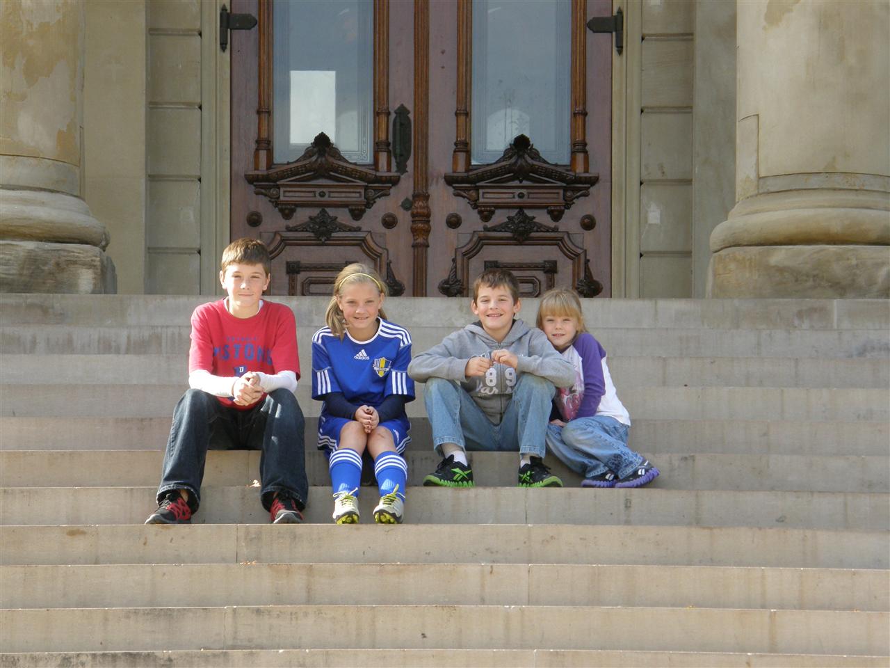 A closer look at Tyler, Sam, Drew, and Jay sitting on the steps.
