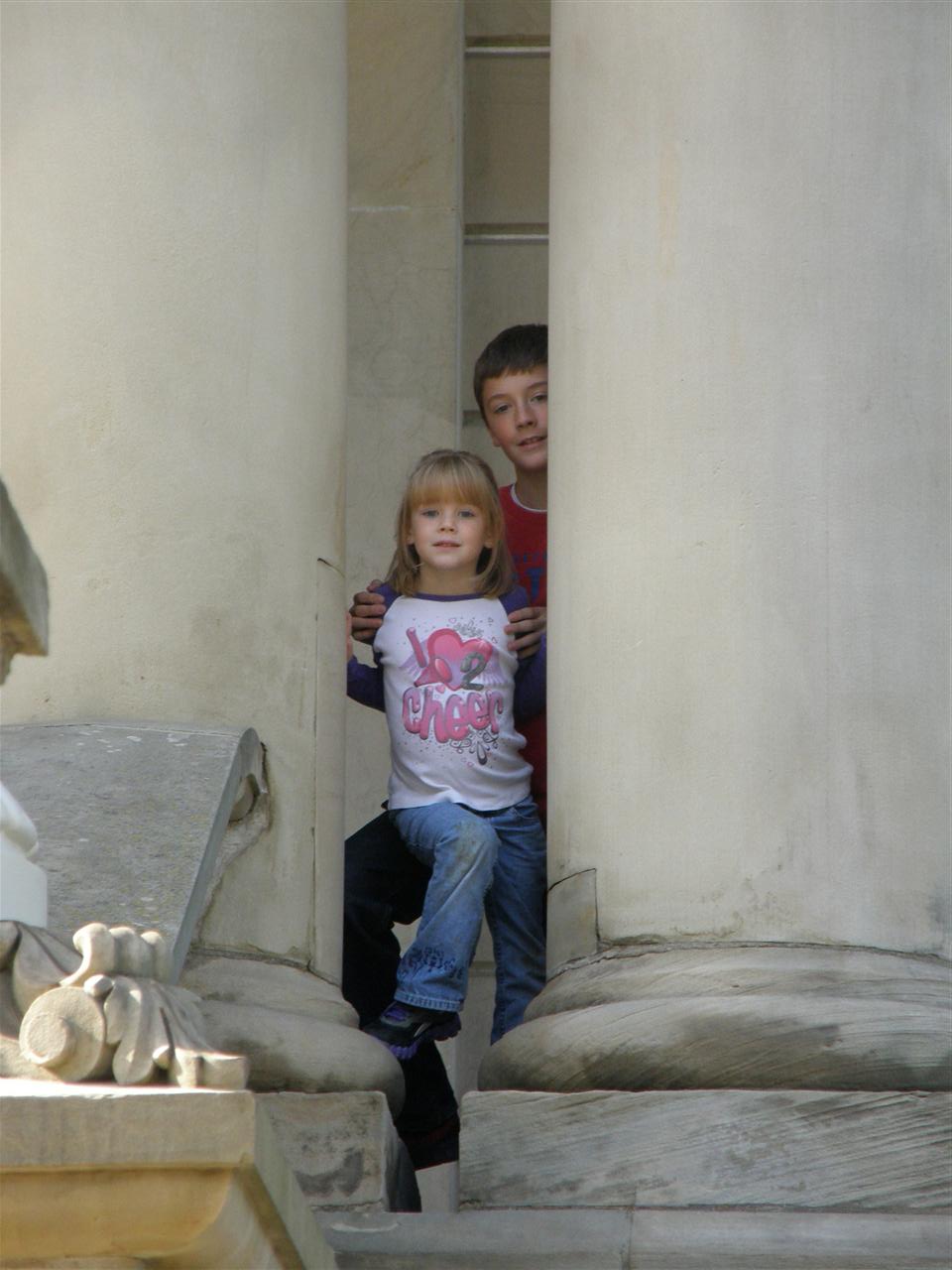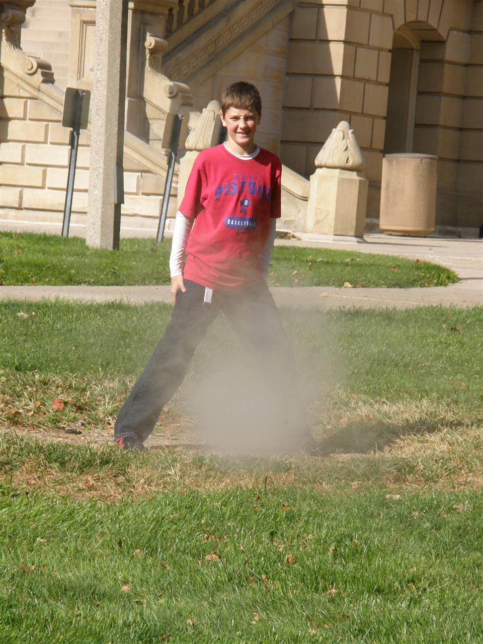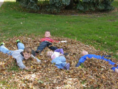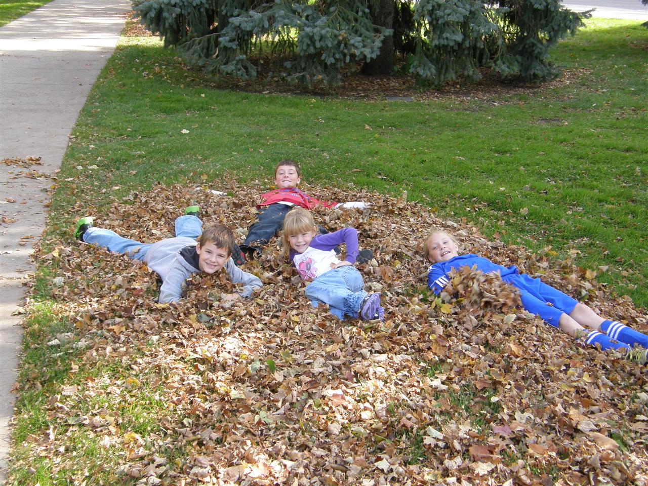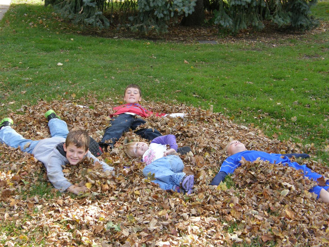 Drew, Tyler, Jayden, and Sam playing in the leaves on our way