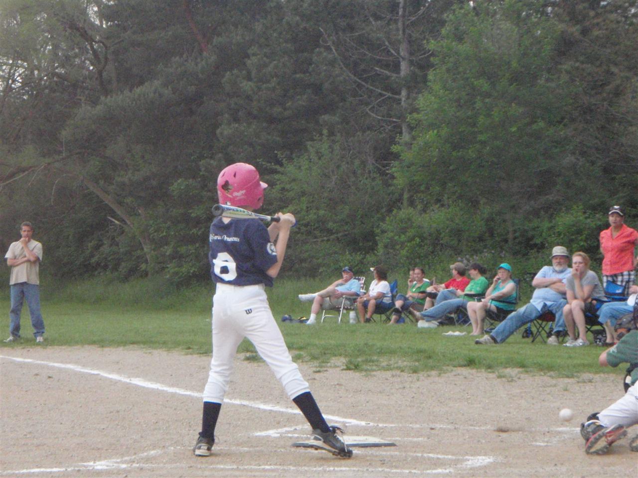 For some reason Samantha's regularly scheduled game was bumped from the originally scheduled field, forcing the coaches to scramble to find a spot to play. They settled on a local elementary school for the first half playoff game. Due to a conflict with another game, Tara & I were forced to split up for the action today, and so I don't really have much to add. I did make it to the game late, just in time to see each team score the maximum 5 runs in the final inning, which took place way past most of the players bedtimes. Thankfully the final run that was walked in was enough to give Sam's team the winning run. |