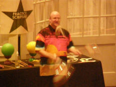 the evening. Here he is juggling some rubber balls...