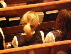 Erica and Marissa sitting in the pew.