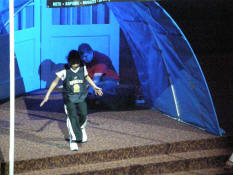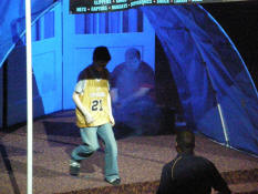 Samantha emerging from the tunnel during introductions.