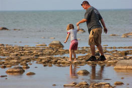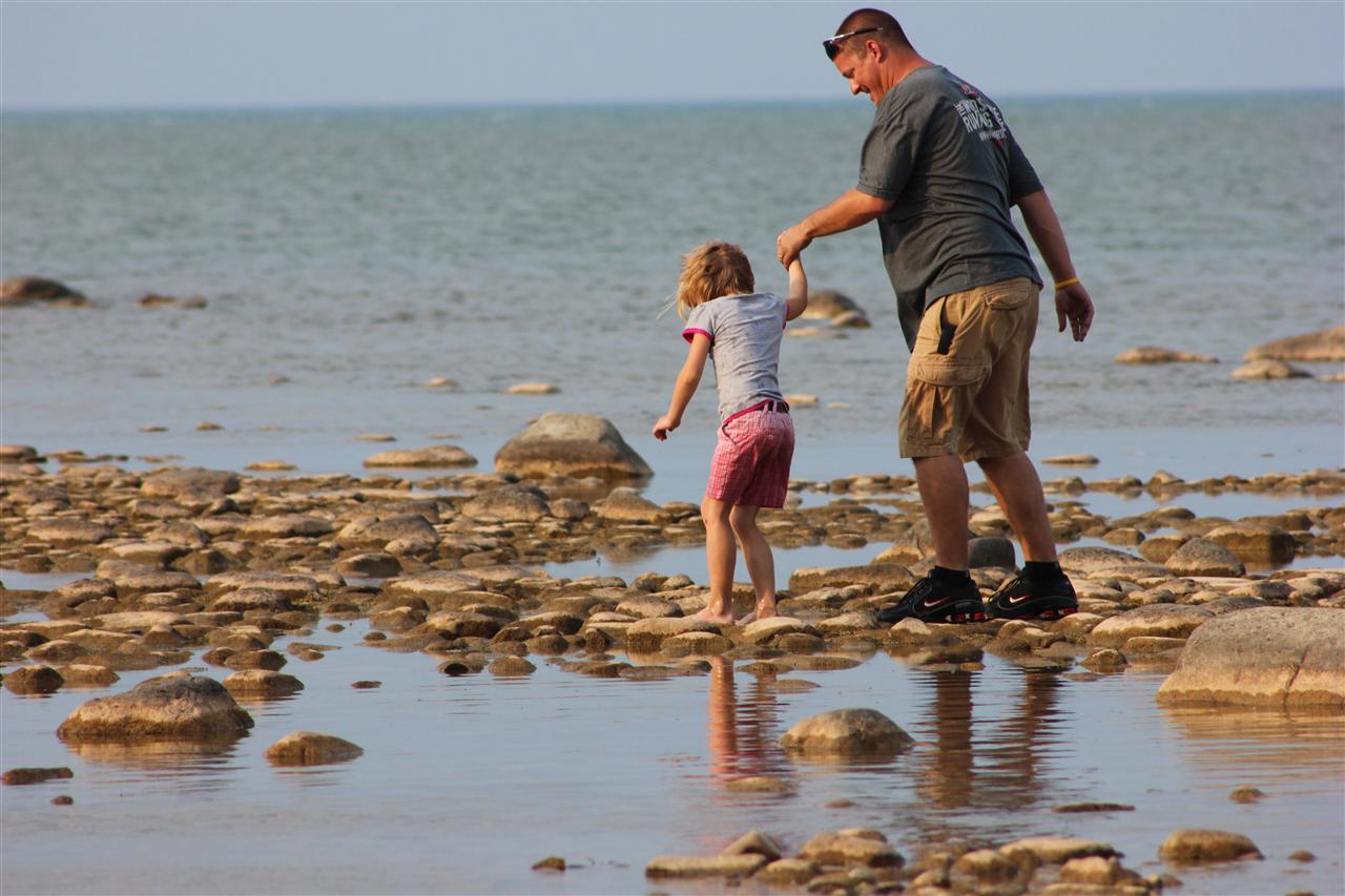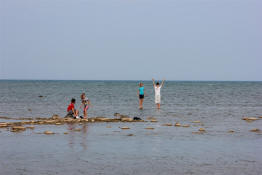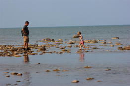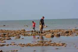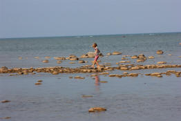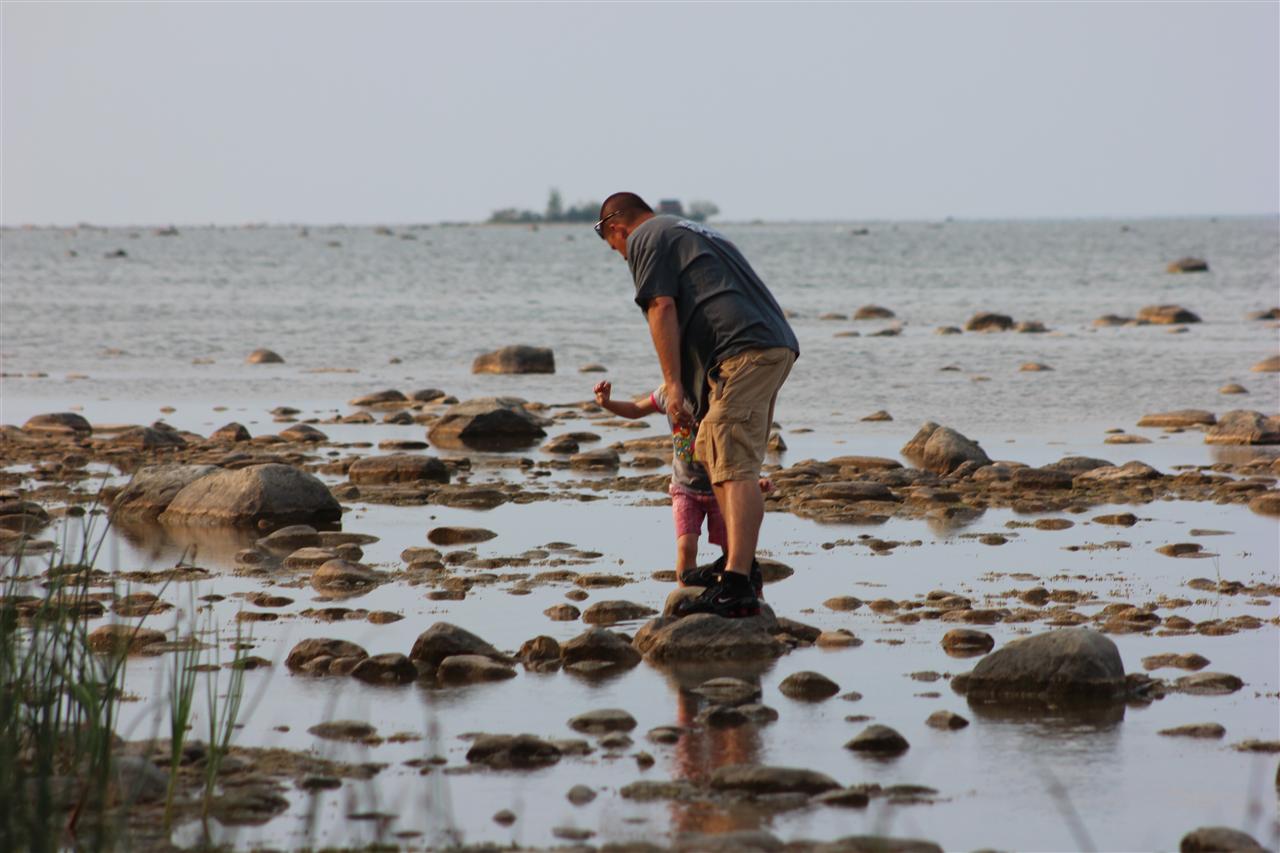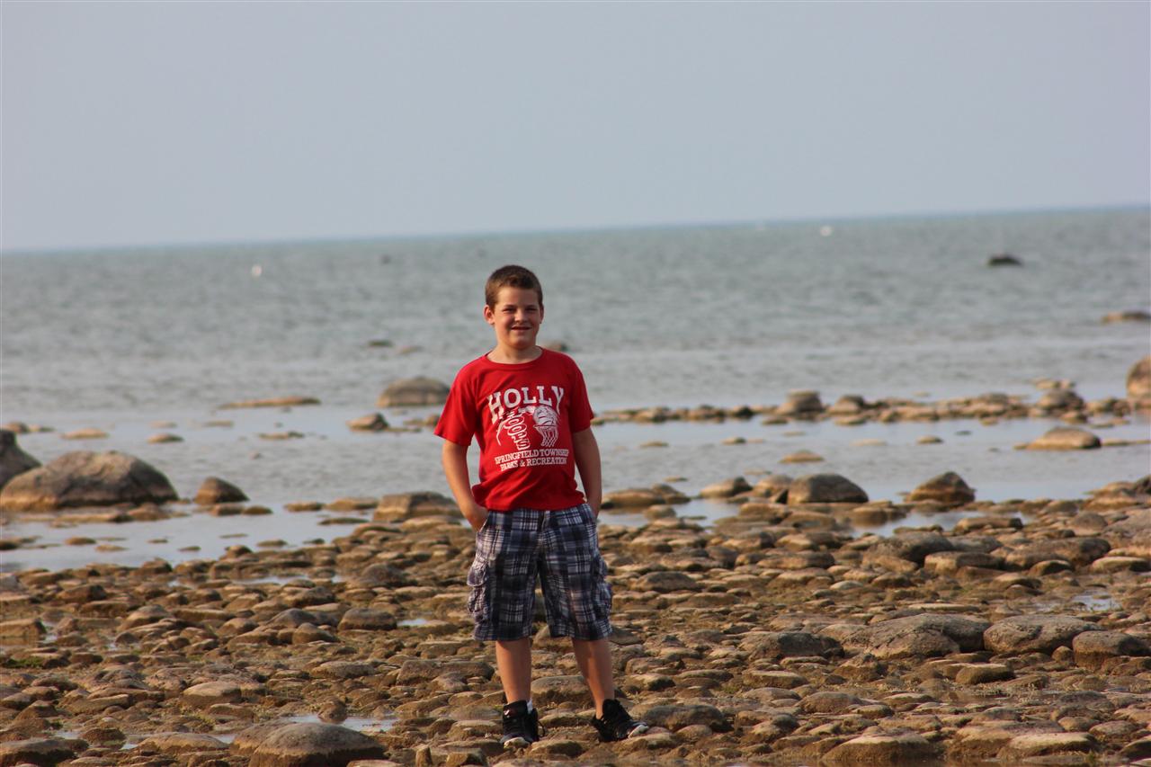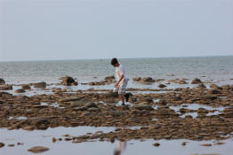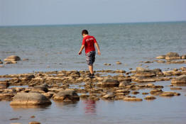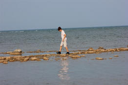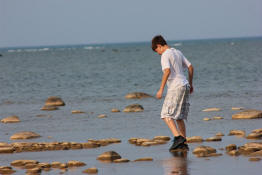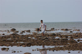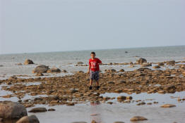 Drew walking along the shore.