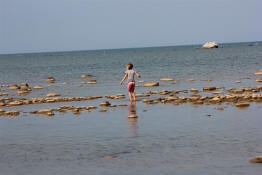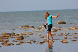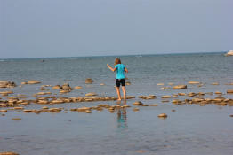 Sam walking through the water on her way back.