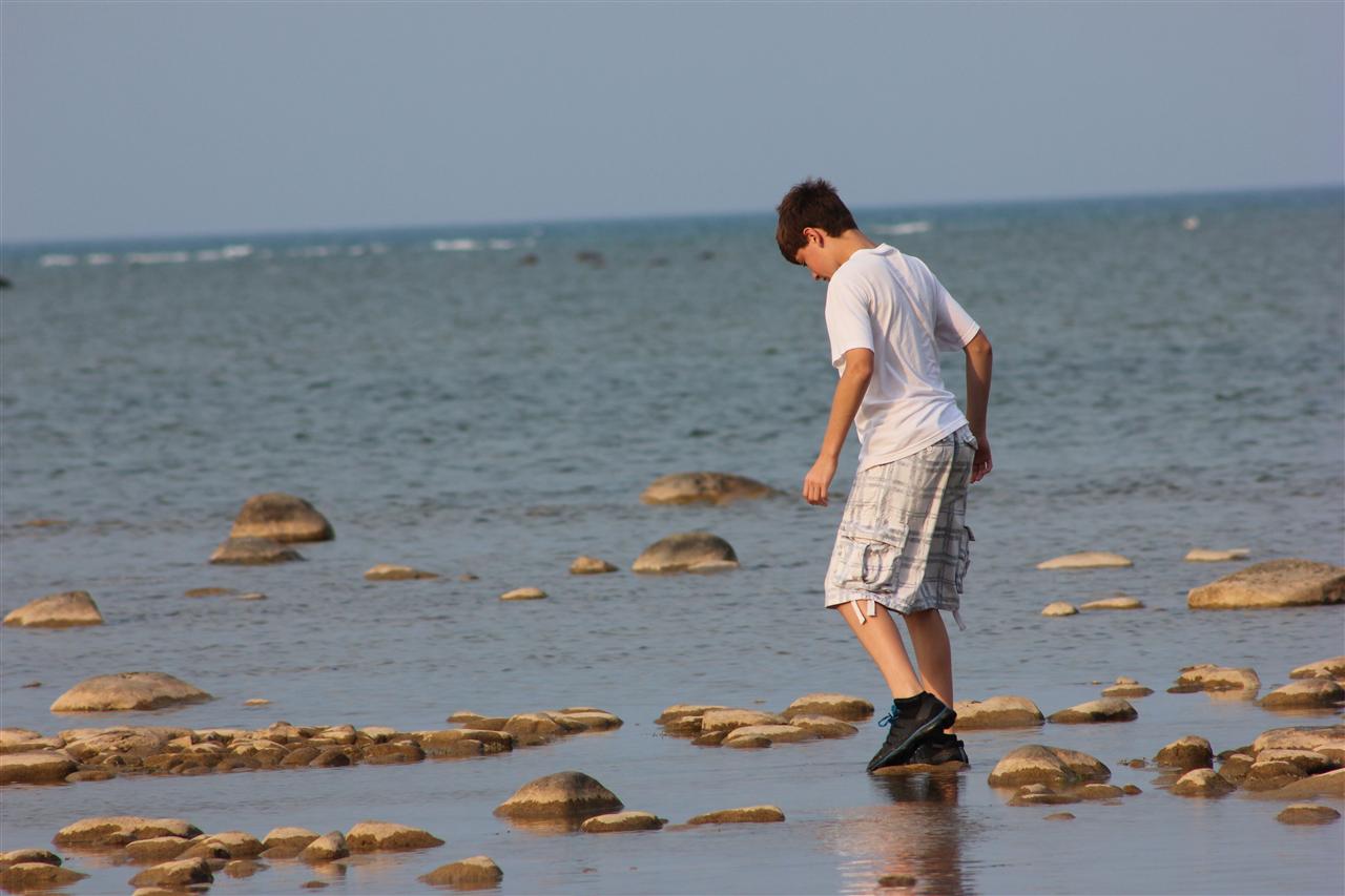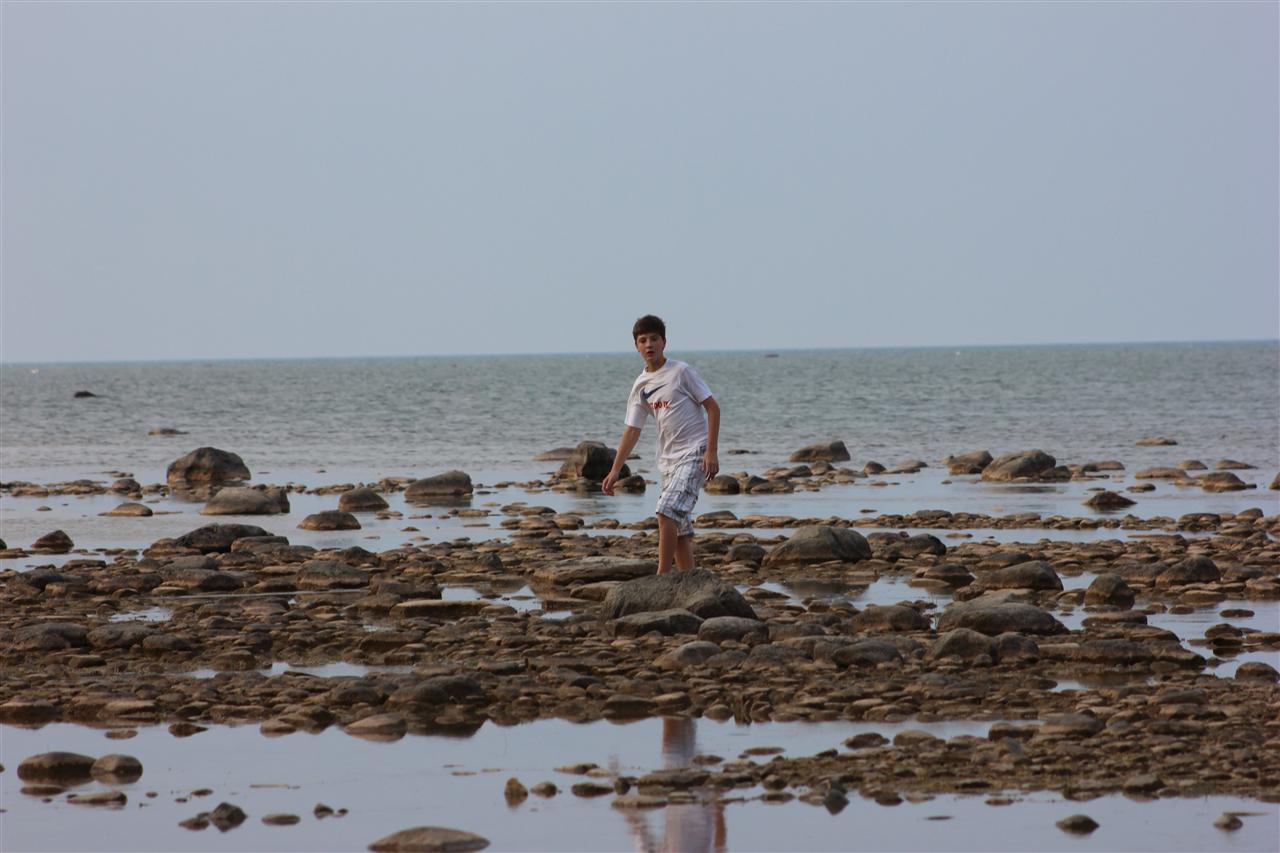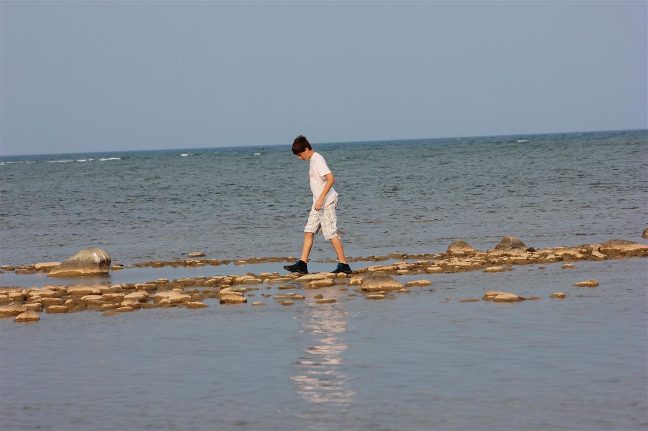 Tyler walking across the rocks...