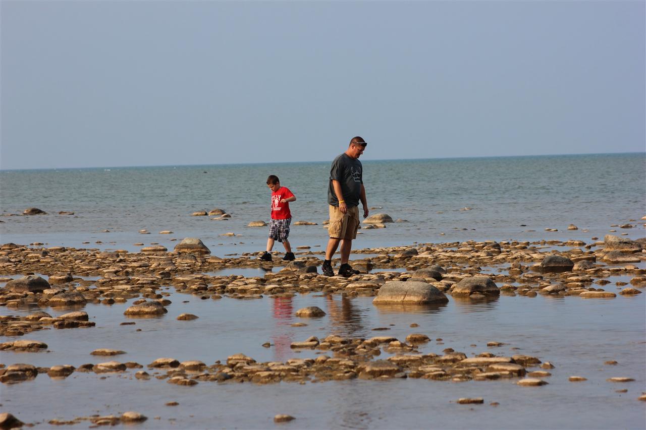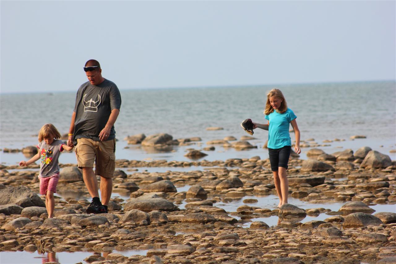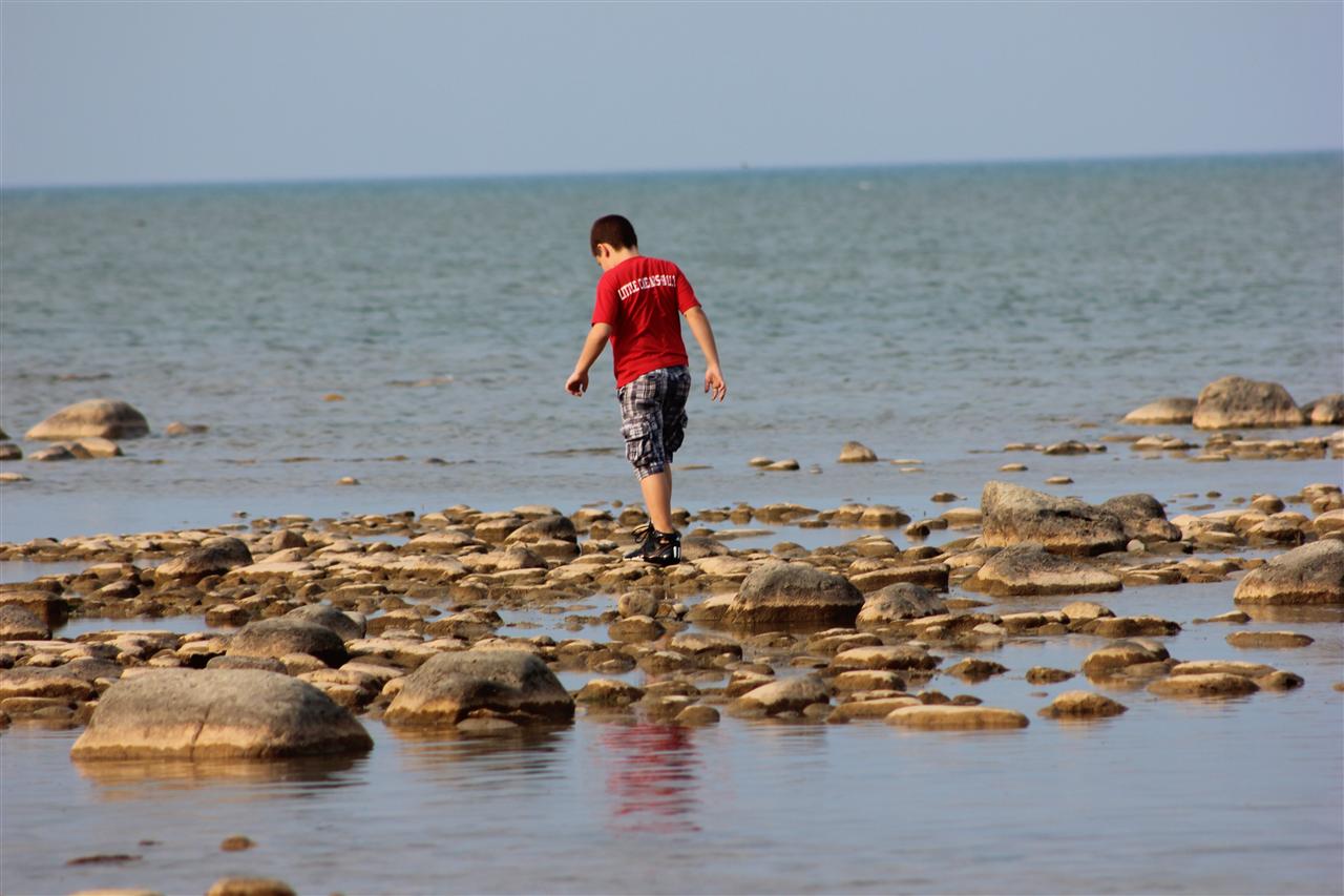 Tyler walking across the rocks...