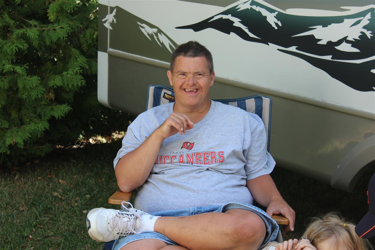 Steve (catching flies), Jayden, and Tyler sitting outside,