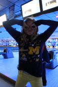 Here is Erin watching her ball approach the pins.