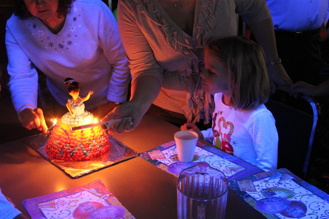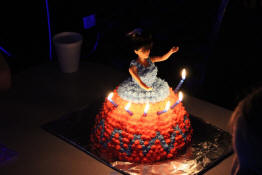 A look at Jay's princess cake with the candles lit.