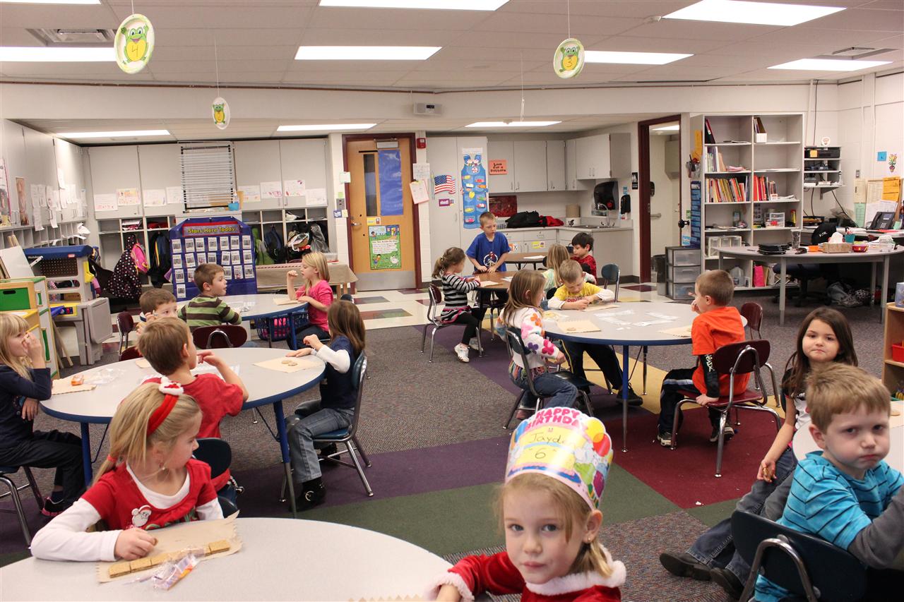 classroom, as she distributed treats (princess sugar cookies) to all of her