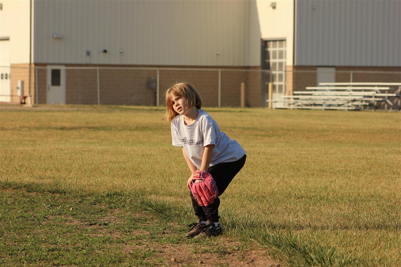 Jayden standing in the on-deck spot waiting for her turn to bat.