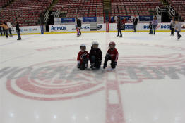 On Thursday, September 20th, I stumbled upon a link on Facebook for open skating sessions at Joe Louis Arena (the NHL owners have to do something to try and keep their fans while they continue to lock out the players). I sent a quick email to Tara, and she was able to secure some tickets for us to go (the tickets were free, but space was limited). She ended up with enough tickets that we were able to take along our friend Jeff and his son Andrew, who plays hockey with Drew. We also took Carson, another hockey teammate and the son of Tara's friend Deanna. We arrived at the arena with about 10 minutes to spare before our time on the ice got underway. We signed our waivers and moved to the "locker room" area (folding chairs were set up for us along the boards where bleachers would be during an actual game) to put on our ice skates. While Tyler, Samantha, and Jayden were all interested in joining us (mainly to avoid school for the day, I am sure), you had to be able to bring your own skates with you in order to participate, and they don't have any. For our family, it was just Drew and I on the ice, while Tara stayed off so that she could take pictures of us all having fun. We skated for a little less than an hour (it was 50 minutes, I believe). While it had been quite some time since I had done any skating, I managed to stay upright the whole time. I saw Drew on the ice a time or two, but I think that was mainly intentional. After skating we changed back into our shoes and headed upstairs to the concourse. We took a few pictures with some of the legends statues, and the kids played some of the games that were set up (including a shot-target game that Drew did very well at) and some table hockey type games. We then headed off to the concession stands, where everything that they were selling - hot dogs, large popcorn, nachos, pizza, 32oz. pop, etc. - was going for just a buck a piece, tax included! Needless to say we were able to get a meal for cheap, so we opted to "dine in" at the arena instead of stopping on our way home. Ironically enough, as we were deciding what to eat, Tara noticed that an old family friend was sitting at one of the tables. John C., who used to work for the Detroit Pistons and is now holds the same position with the Detroit Red Wings, was there. I said hello and talked to him for a moment (I didn't want to bother him too much - he was eating his lunch, after all) before heading off to pick up pop and pizza for Drew and I. After eating we headed out of the arena. Instead of heading straight home we stopped off at my work so that I could be dropped off to start my day. Unfortunately. That was the only drawback to a great morning!