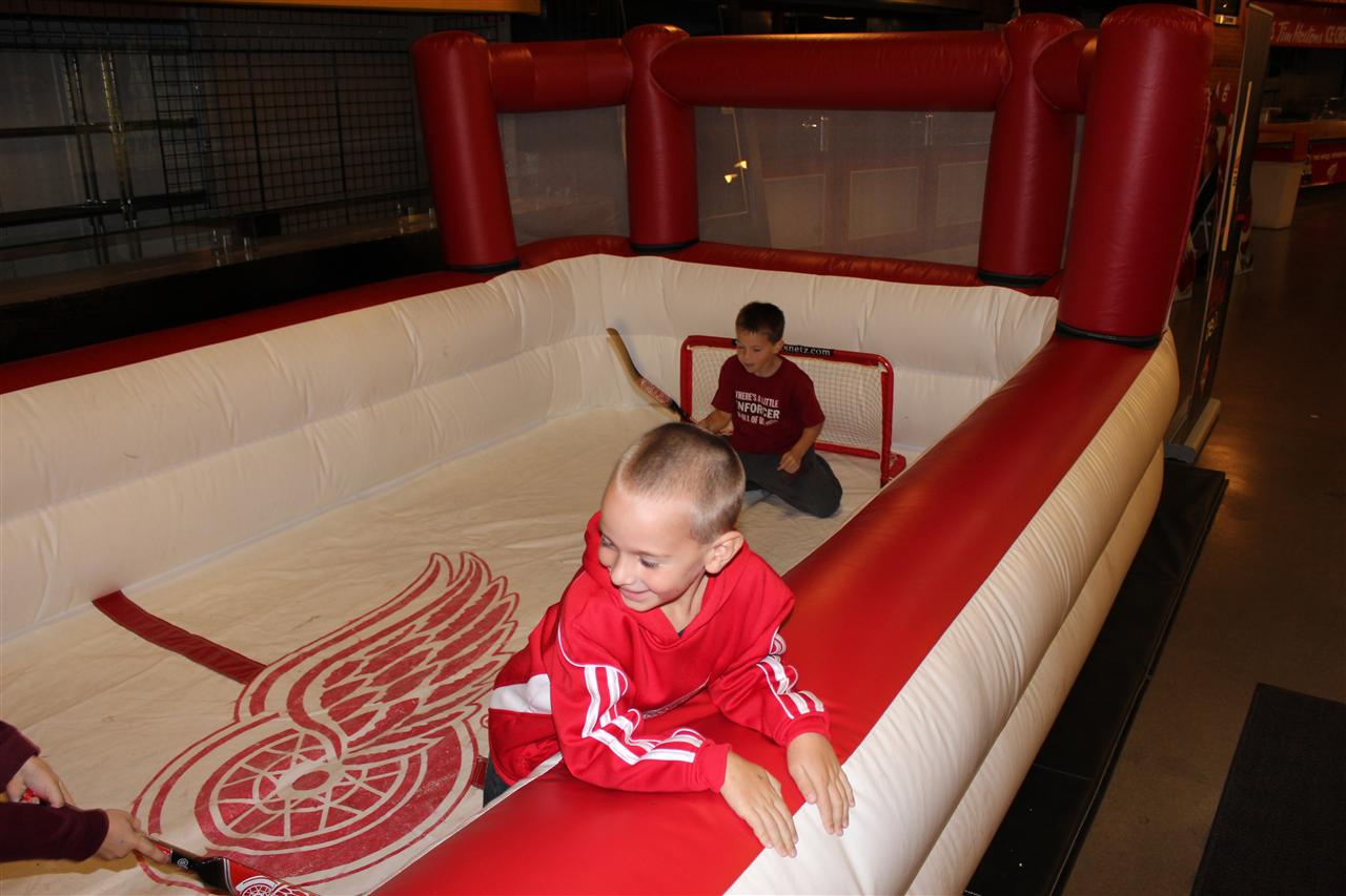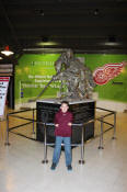 Drew posing as Jimmy Howard, the Red Wings goalie.