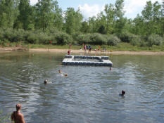 arranged to resemble a, uh, capsized catamaran. We had to swim out
