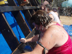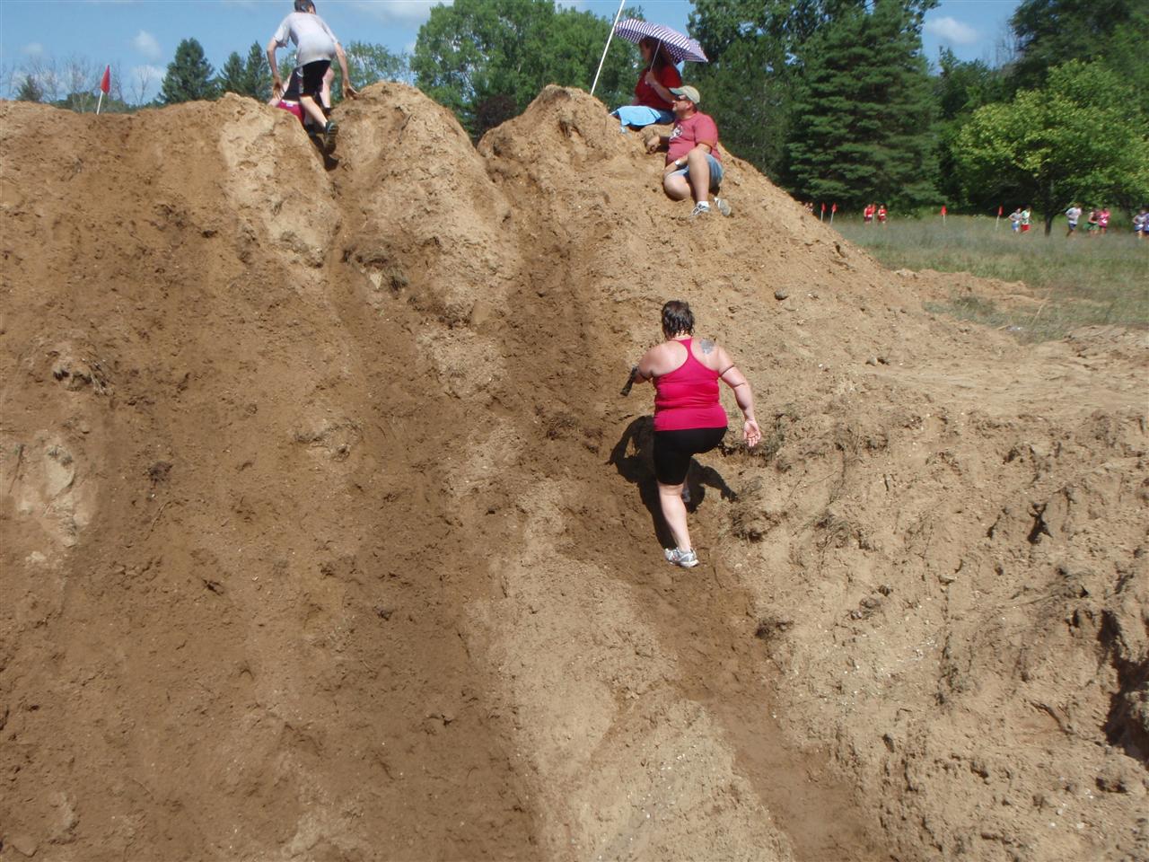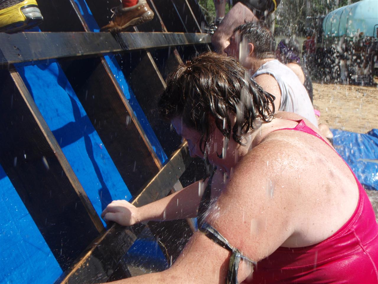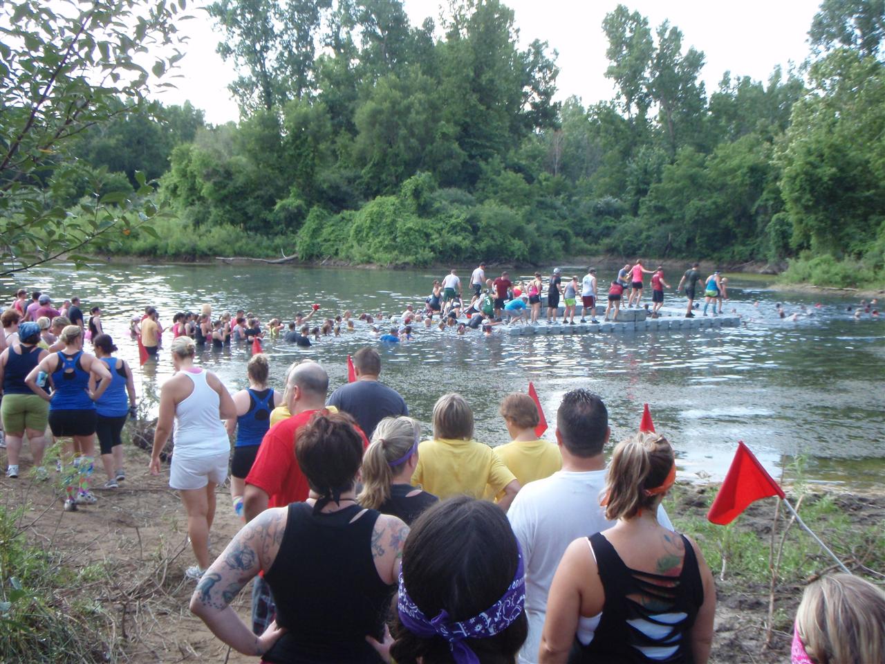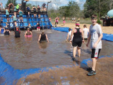 through a waist deep "pool" of cold, muddy water and then climb up a ladder,