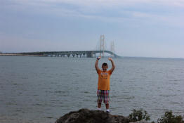 Drew "holding up" the Mackinac Bridge (stealing Sam's idea).