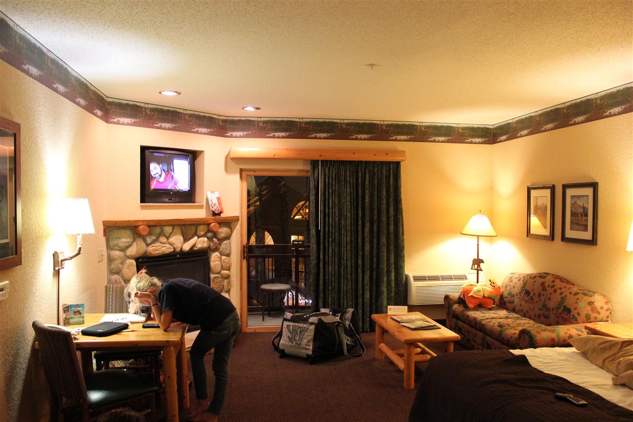 Traverse City, MichiganGreat Wolf LodgeFebruary 1st through February 3rd, 2013Friday, February 1st, 2013 - 18/10°, Light SnowGoin’ to the lodge. Goin’ to the lodge. Great Wolf Lodge! I got the privilege of being the car packer today, as I was forced to take the day off of work so that we could leave before midnight tonight. Another joy of being on second shift… I did manage to have almost everything ready before Tara got home from work around 1:00pm. She gathered up the last few items and we finished loading the Buick Enclave that I got through the Ambassador Program at work for this weekend. It was a tight fit with Drew’s hockey bag in the back, but we managed to fit everything in and still have room for the kids. Tara & I left the house a little before 2:00pm to go pick up Samantha, Drew, and Jayden a little early from school. With them in the car we were off to Tyler’s school to pick him up after his last class of the day. He came out to the car with some paperwork for summer basketball that needed to be turned in today, so I headed inside with him to find his coach and get the forms turned in. Once that task was completed, we piled into the car and headed home. After a quick stop at home to drop off the kids backpacks we were officially on our way. This was a little after 3:15pm, with a 3 ½ hour drive on the schedule ahead of us. We had an easy drive the entire way, with only two stops at McDonalds required – one in Bridgeport to eat and the other in Cadillac to use their restrooms. We must have had poor timing for each, as both restaurants were packed with high school kids. As we left Cadillac the roads became snowier, but it wasn’t too bad to drive in. Aside from some time spent following some slow moving vehicles we were able to drive at or near the speed limit the whole way. We arrived at the Great Wolf Lodge in Traverse City around 7:00pm. Tara headed inside to check in while I sat in the car with the kids. It didn’t take long for the bathroom requests to start piling up, so we headed into the lobby to seek out a restroom. While inside we took a moment to peek through the windows into the water park area, and the kids were already raring to get their suits on and go for a swim. We had a few things to take care of first, like getting out luggage out of the car and into our room. Our room was a KidCabin Suite, which meant that there was a separate “room” in it with three beds – a single and a set of bunks. There was also a queen bed, a sleeper sofa, a dining room table, a full bathroom, and a kitchenette area with a sink, microwave, and mini-refrigerator. We also had a balcony that overlooked the water park, although it was much too cold outside to enjoy this feature! We quickly unpacked our bags, putting clothes in the drawers and drinks in the fridge before slipping into our swimsuits to head down to the water park. We had a lot of fun in the water park area of the hotel. We met up with our friends Jeff & Becky, and their kids Thomas and Andrew. All six of the kids had fun playing in the various pools together as well as riding on the assorted slides. We were on a time limit for the evening, as the park closed at 9:00pm. We managed to get out a little before that time, however, leaving at about 8:45pm.