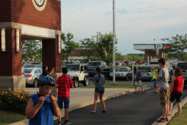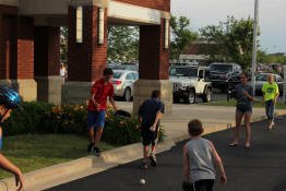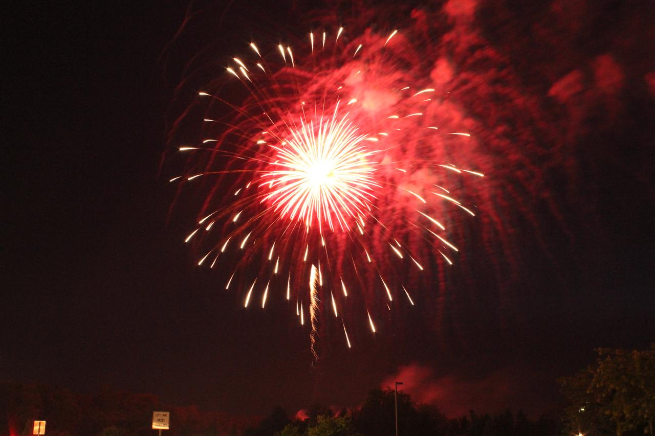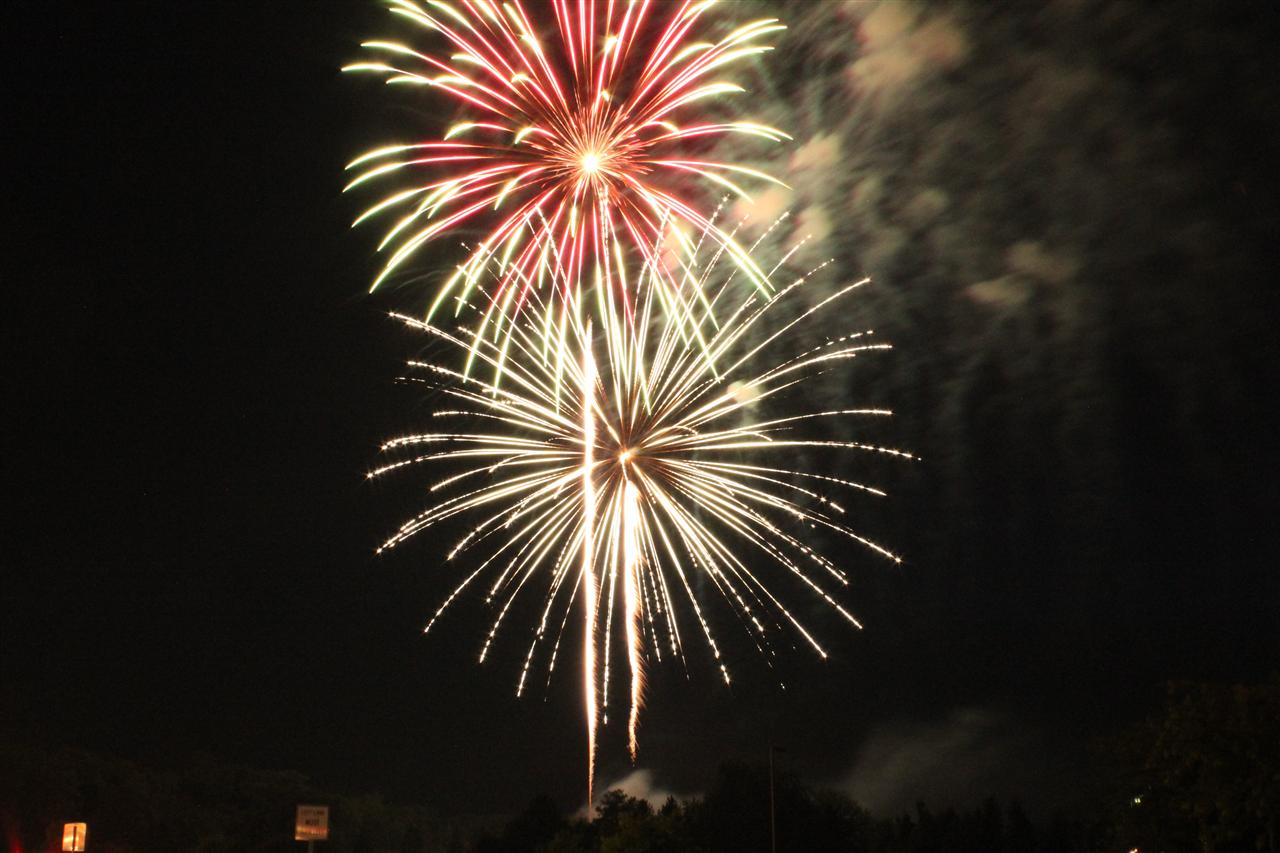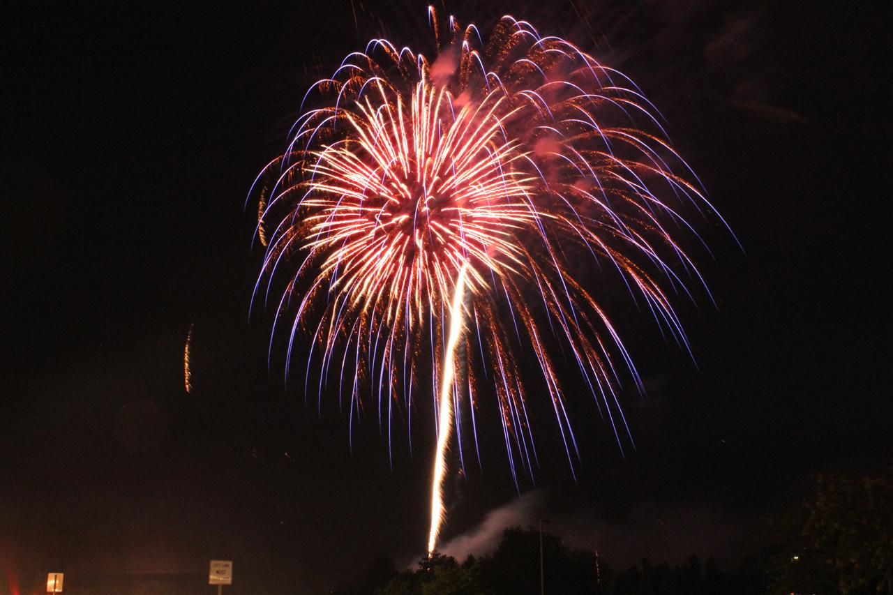 July 4th, 2013 After spending the morning watching the Freedom Festival Parade, and the afternoon swimming, it was time to spend the evening watching the Freedom Festival Fireworks. We arrived around 7:00pm to find our usual viewing spot nearly overrun with people. Thankfully we were able to carve out a spot between some other people (who probably weren't too happy about our arrival, but who cares!) so that we could set up our tent and enjoy the show. We brought some of the food that was left from this afternoon's meal to snack on tonight as we waited for darkness to fall. The kids played catch, tag, and other games in the parking lot (in addition to inline skating, which abruptly ended when Drew fell and began screaming at the top of his lungs - and many other people's lungs too) to pass the time, while the adults spent the time talking to each other and supervising the massive brood of children. In addition to everyone at the swimming pool earlier today, we were joined by Tara parents as well as her sister and her family. All in all it was a great way to end a busy, but very fun, day!