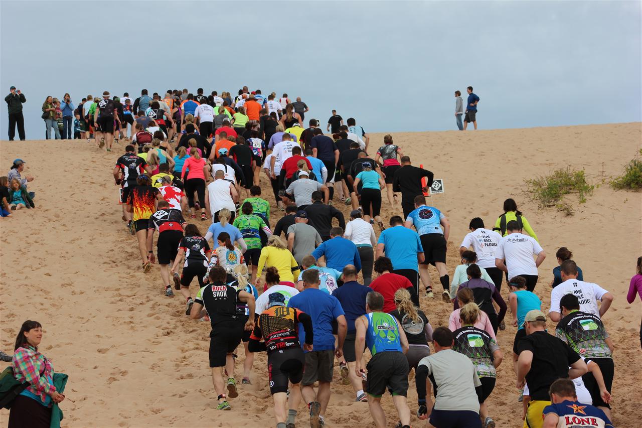 WHAT: This unique multi-sport event is challenging, but not impossible. Appropriate for any person of average physical capabilities from first time racers, to high school athletes and professional triathlon competitors, anyone looking for a healthy challenge will find this event of interest. Best of all, there’s no swimming required! The challenge is there for the competitive athlete, however, if you can walk, run, paddle, and bike, the overwhelming beauty of the area and the camaraderie of those attending will make this event worthy of your participation. THE COURSE: RUN – BIKE – PADDLE: The 22 mile-long course is designed to take the average athlete approximately two hours to complete. The M-22 Challenge will begin at Sleeping Bear Dunes National Lakeshore park (aka Little Glen Lake Picnic Area) located on the northwest corner of Little Glen Lake at 8:00am. RUN: The event starts with the running portion where athletes will run south down M-109 and into the Sleeping Bear Dunes National Lakeshore “Dune Climb” park to face a steep and sandy climb up the dune. The reward at the top is the view! Competitors will then catch their breath in a fun run down the dune and along a groomed trail to M-109. On the road, runners will sprint back to the event site and transition area to complete the 2.5 mile run. Approximately half of the run will take place on pavement. BIKE: The second portion requires athletes to bike 17 miles around Big and Little Glen Lake. Bike highlights include a pedal through downtown Glen Arbor, cycling along sections of the Crystal River and the famous M22, and of course, Inspiration Point. The Leelanau County Sheriffs Department will be leading the first few bikers around the course, but the rest of the pack is on their own. There will be volunteers at all major intersections, but keep in mind you must follow traffic laws and be aware of cars pulling in and out of driveways. PADDLE: Transitioning from a bike to the water, the third and final portion of the event has participants paddling out and back into Little Glen Lake for 2.5 miles. Athletes are only allowed to use one (1) paddle to hand power their chosen craft (kayak, standup paddle board, anything else you can dream up! etc.) A two blade paddle is allowed, but in no way can the paddle be fixed to the craft. At the end of the paddle portion, athletes will jump out of their boats and run through the water to the finish line. (Participants need to wear or have a PFD on their craft). With the description of the race out of the way, Jeff & I started off just after 8:00am in the morning for our race. I started out a bit faster than him in the "RUN" portion of the race, but I fear that my shoe selection wasn't the best today. I chose a pair of shoes that are extremely "airy", thus allowing an inordinate amount of sand into them. I was forced to stop shortly after the downhill climb of the dune to empty them out, and this was when Jeff passed me by. Had I not done that I think I could have maintained a somewhat healthy lead on him throughout the run, as it was I trailed him by 15 seconds after the first phase of the event, 20:53 to 21:08. (On a side note, Jeff's GPS watch showed that this section fell far short of the claimed 2.5 miles... I'm not sure, but based on our times I wouldn't doubt that was the case). After our run it was time to climb aboard our bikes for the 17 mile ride around the course. I must admit that this is one area where I got a tad complacent and slacked off in my training. Unfortunately for me, it really showed in my time. I was aiming for less than 90 minutes for my time in the section, based on my last training ride, and I did end up beating that time - 1:27:06, but I was crushed by Jeff and his 1:15:23 time. I don't like to make excuses, but I am going to anyway... I did have to stop once to disconnect my rear brakes, as it felt as though they were rubbing and slowing me down along the way. I doubt that this would have made up the difference in our times (in fact, I'm certain it wouldn't have), but it would have improved my time at least a little had I not had to deal with this little issue. I think that either my rim or my tire itself is slightly out of round at one place, and that I will have to have it looked at professionally. I did attempt to fix it before the race, but obviously I was unsuccessful! With Jeff now well out of my sights, I knew I stood no chance in catching him in the "PADDLE" portion of the race, as my one time in the kayak was no match for his experience. Sure enough, he trounced me once again, this time I posted a 47:39 to his 35:24. Of course it didn't help that I tipped my kayak over during the first leg of the triangle. I was just unable to touch bottom, so I struggled to drag the boat to a place where I could. I did my best to empty the water from the boat, but I still couldn't climb back in. I was forced to wait for another kayaker (I never did figure out if he was in the race or just on the water to help) and a police boat to come around and help me in. I finally drug myself into the boat with their help and the other kayaker pumped out as much excess water as he could before I finished the race. I was pretty bummed by this point, and I can honestly admit that I lost a lot of my motivation while floating and waiting. Overall, I did (in my opinion) pretty crappy. My overall time of 2:35:52 was only better than one other person in our 155 member age group (yep, I finished 154th). Jeff stomped me, finishing with a time of 2:11:40, good for 136th in our age group. Overall Jeff finished at #632 and I came in at #789 out of a total of 821 competitors. Ugh... Next year we move up an age group, so maybe I'll be able to improve my ranking if not my overall time!