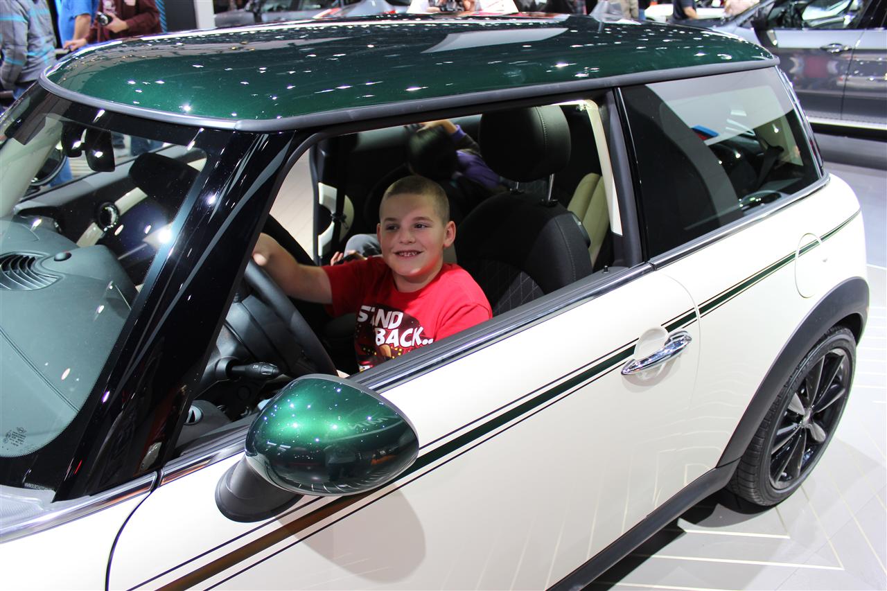 Drew sitting inside one of the Mini's on display.