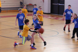 Another shot of Sam dribbling the basketball.