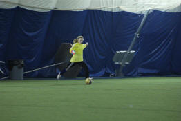 Sam getting off a long distance shot on goal.
