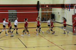 hitting the ball, either setting up her teammates or knocking it over the net.