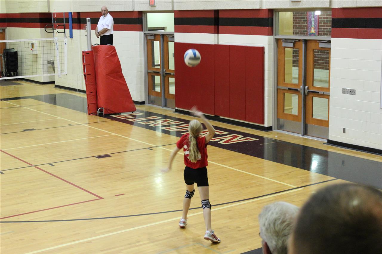 Sam (and her entire team) struggled in the first game, mis-hitting the ball out