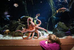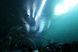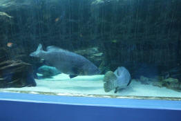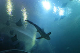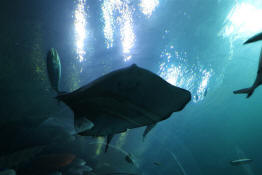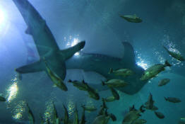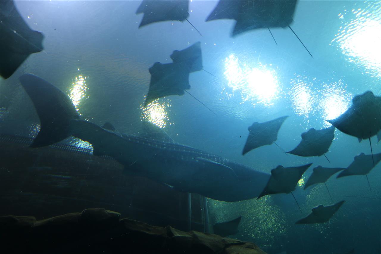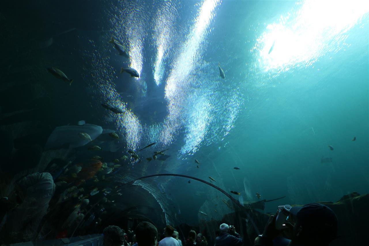 Looking up at the tunnel in the Ocean Voyage exhibit.