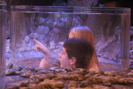Jay, Tyler, and Samantha checking out the penguin exhibit from