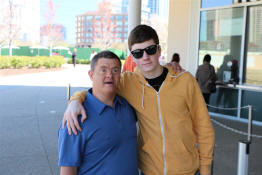 Steve and Tyler waiting to enter The World of Coca-Cola.
