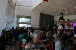 The crowd gathering to enter the exhibit space.