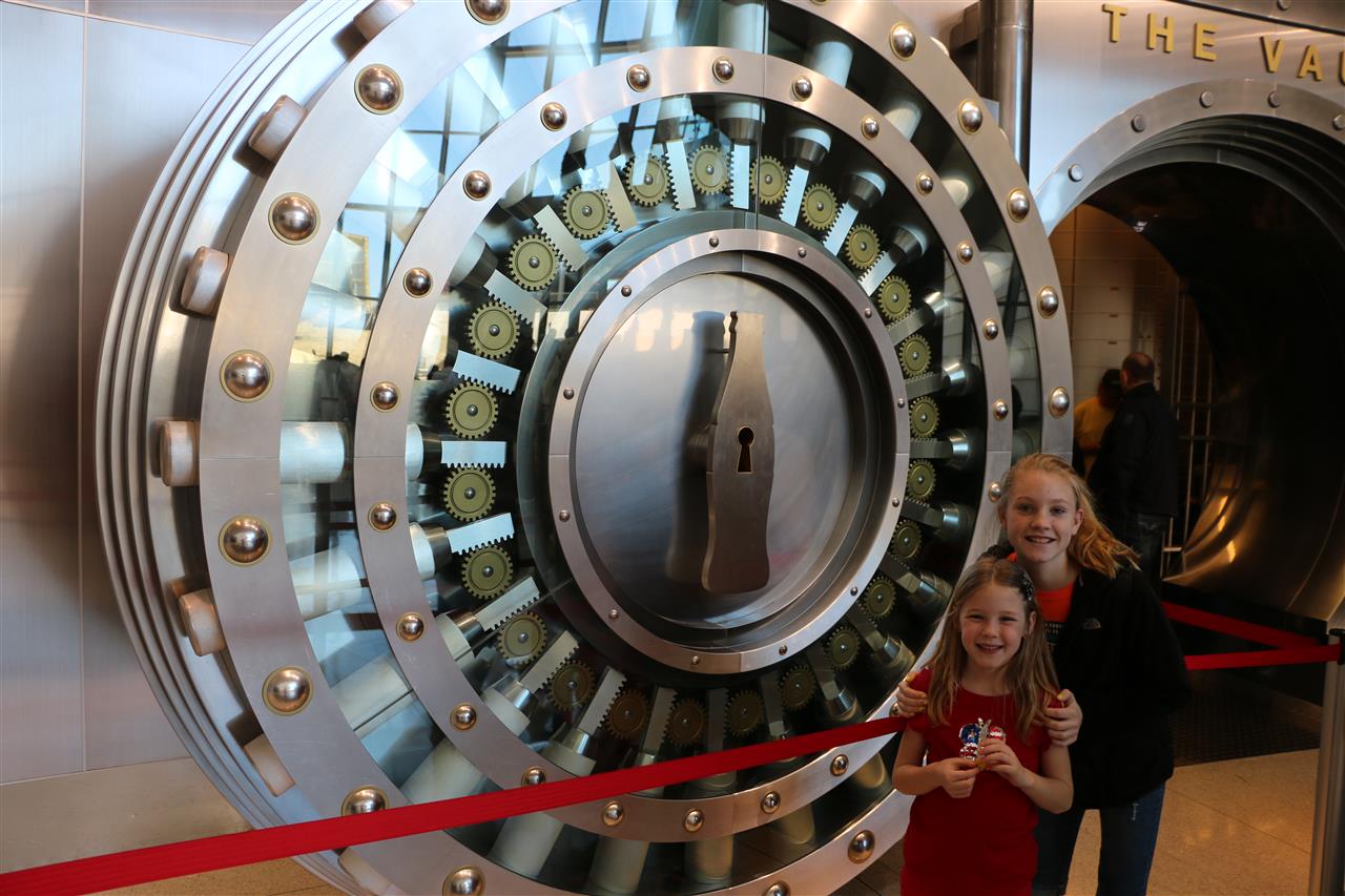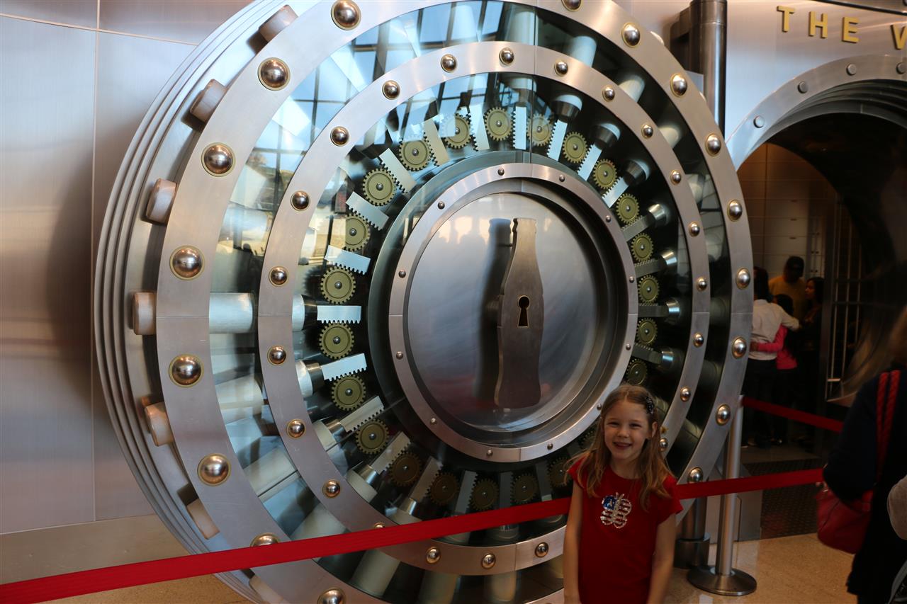 Jayden standing in front of the entrance to "The Vault" exhibit.