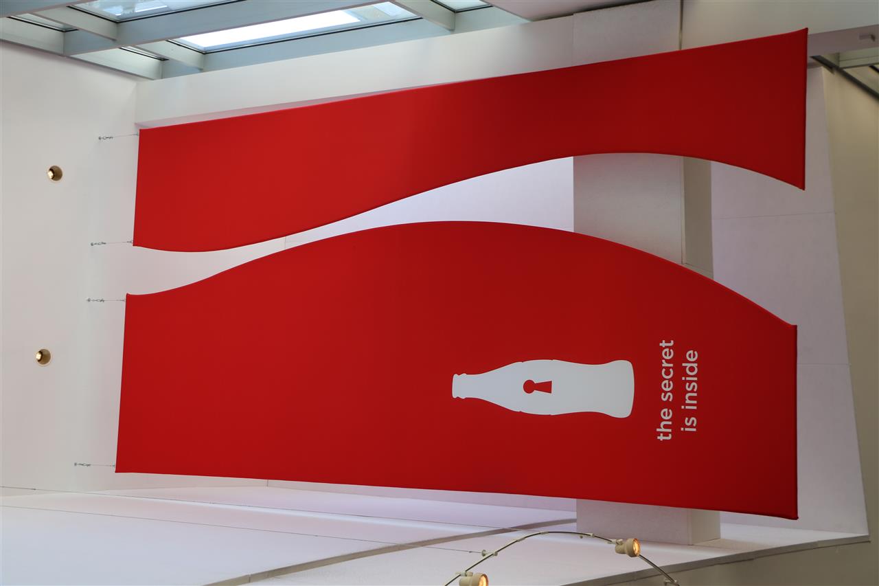 A cool Coca-Cola banner hanging in the entrance lobby.