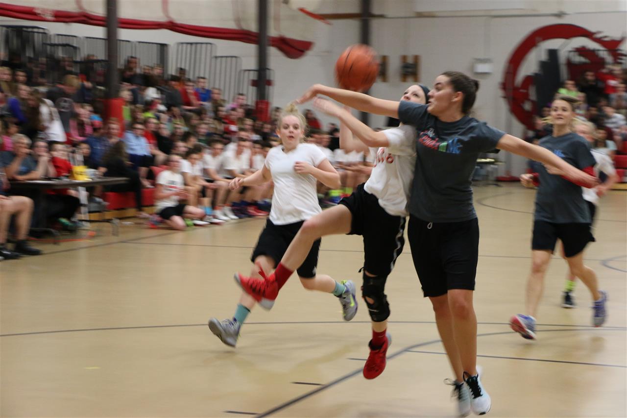 Staff basketball game. Samantha and her Lady Bronchos teammates took this game