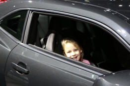 Jayden sitting inside the Chevrolet Camaro ZL1.