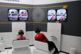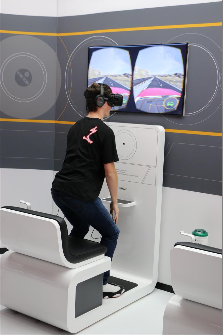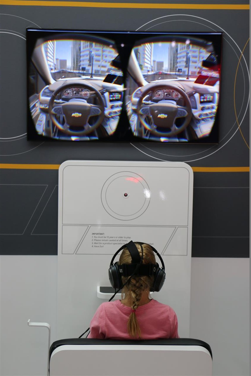 Jay and Drew playing the virtual reality game at the Chevrolet