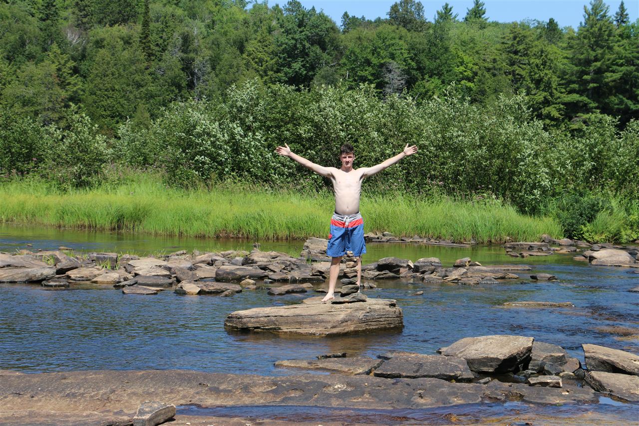 Carlos, Tyler, Mariah, and Samantha standing on a rock.