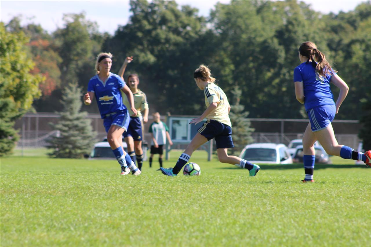 Sam dribbling the ball across the middle.