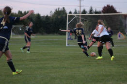 Sam lining up a shot on goal that sailed just wide.