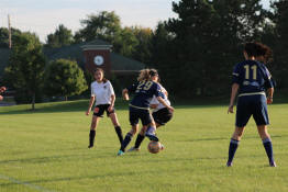 Samantha driving the ball down the field...