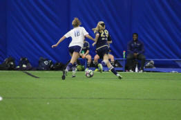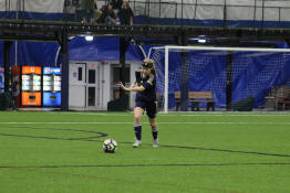 Samantha dribbling the ball down the field.