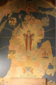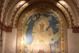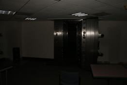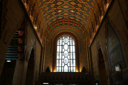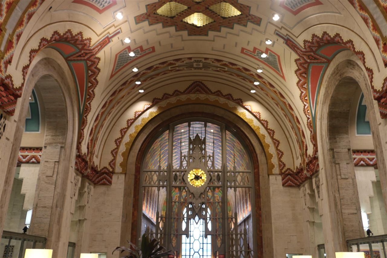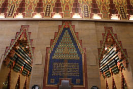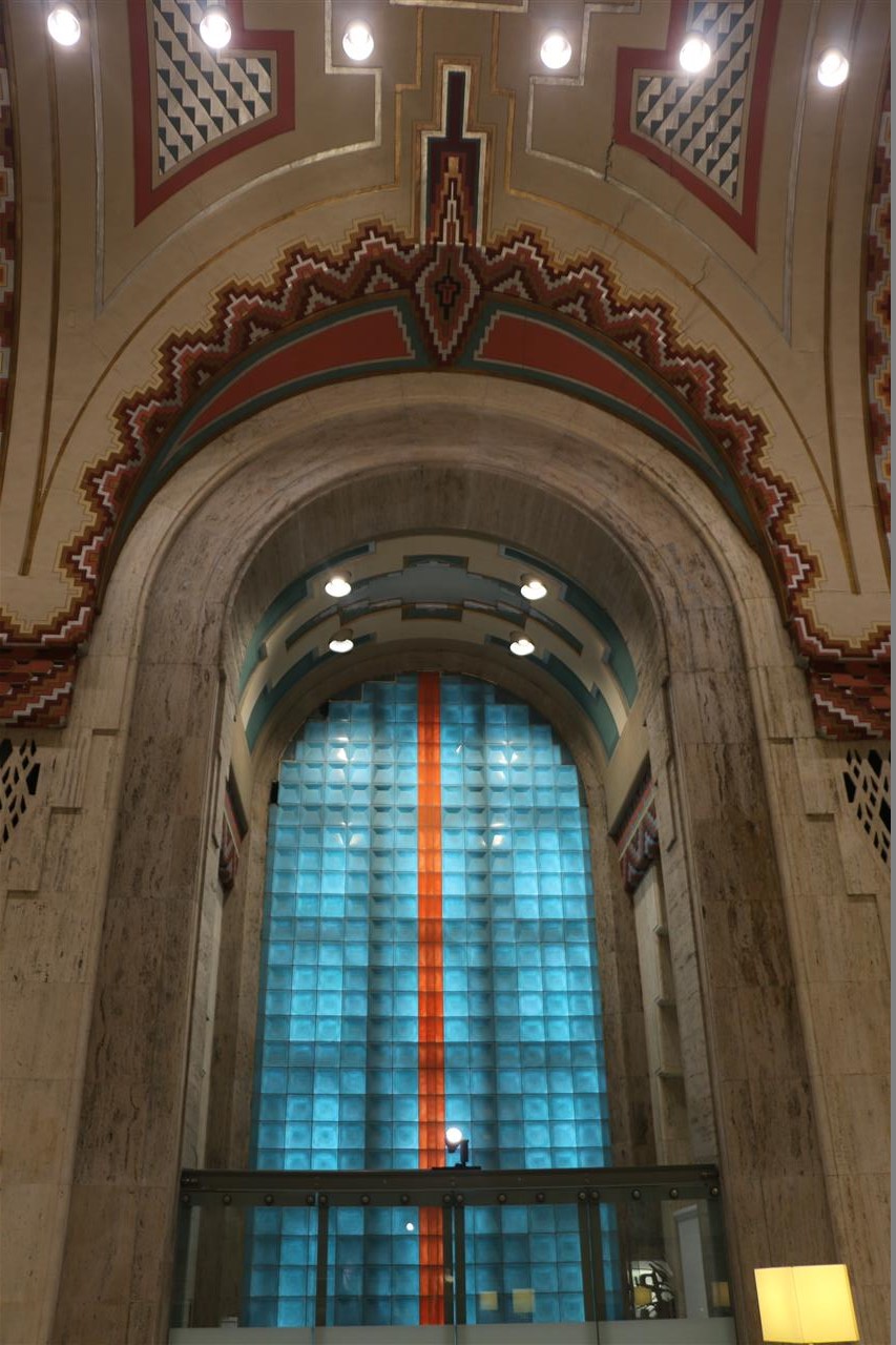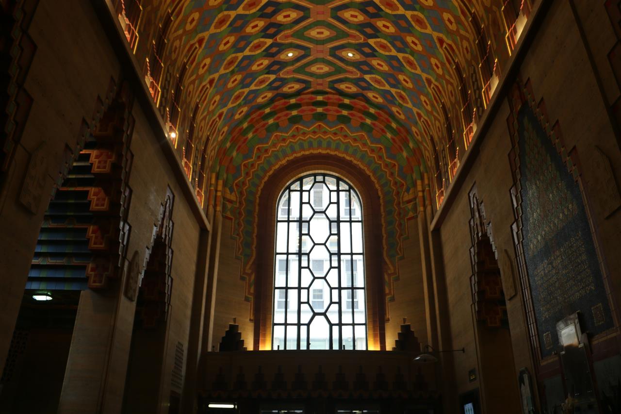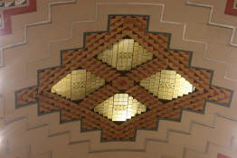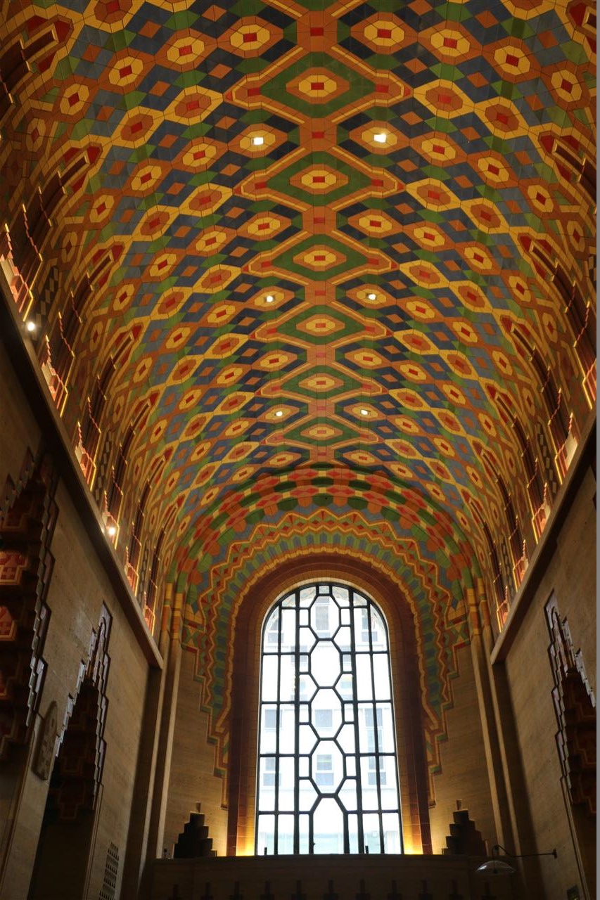 horse-hide canvas ceiling, designed to dampen the noise in the area.