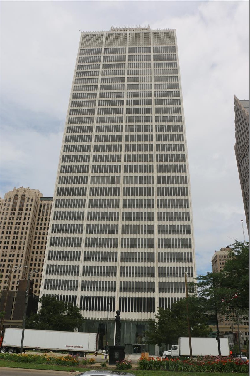 The One Woodward Building as seen from Hart Plaza.