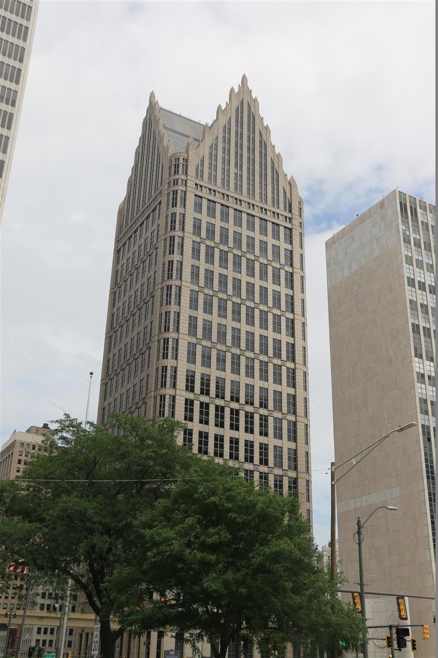 A closer look at the Penobscot Building. The wavy lines in the