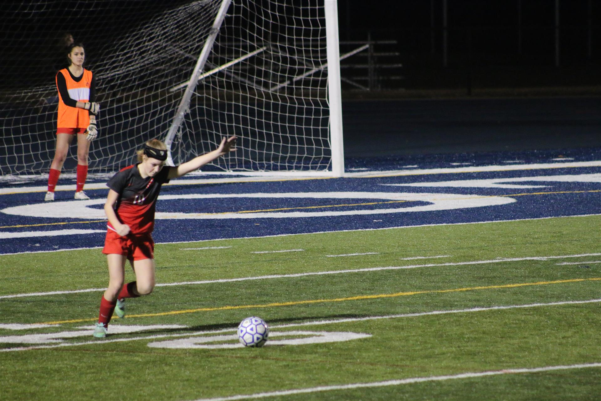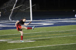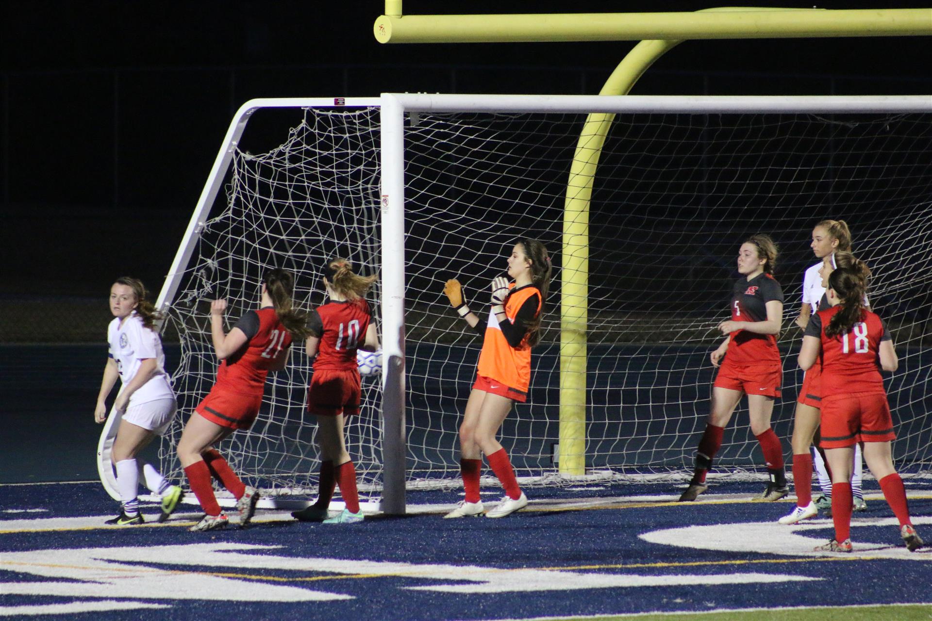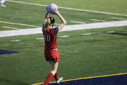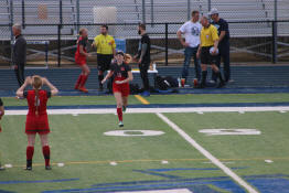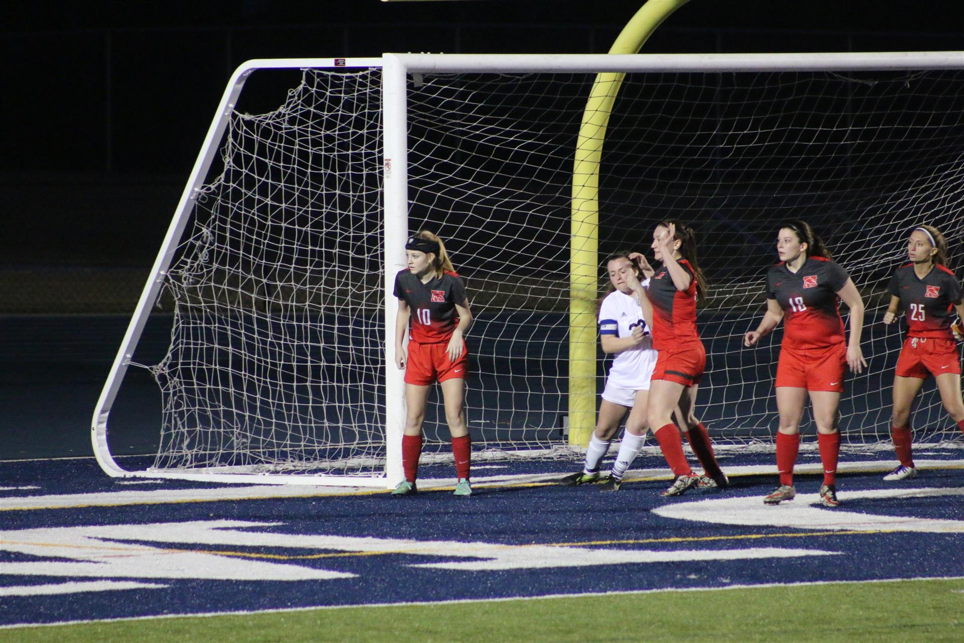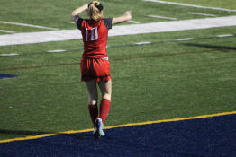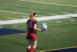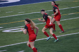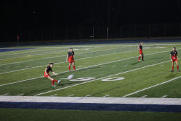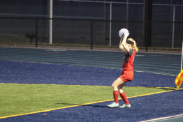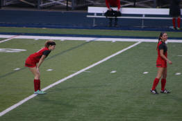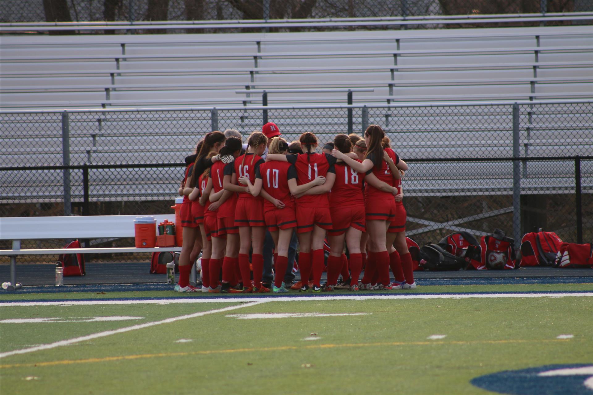 Sam and her Holly Bronchos teammates in the pregame huddle