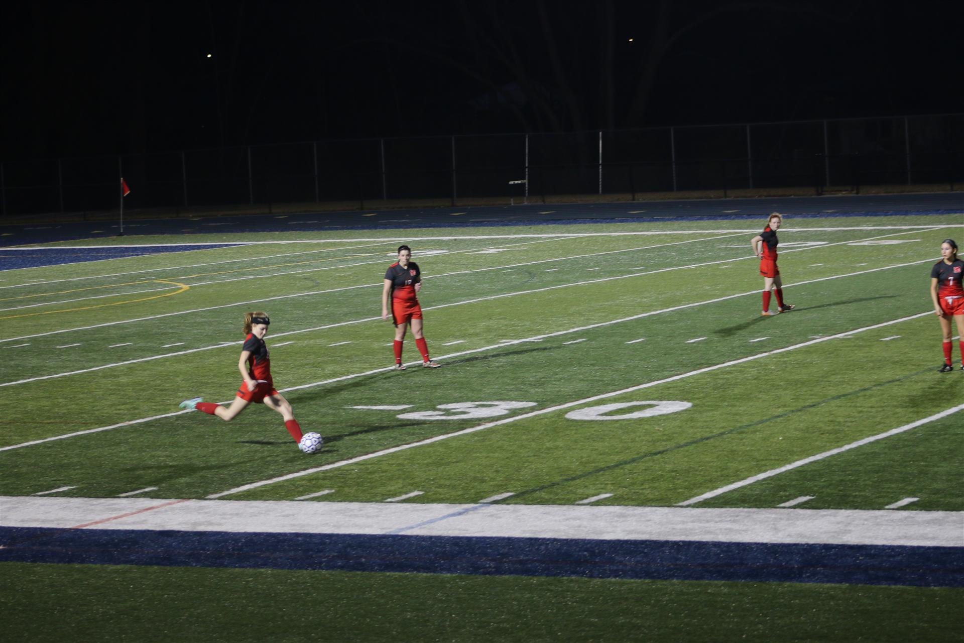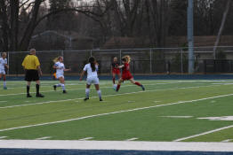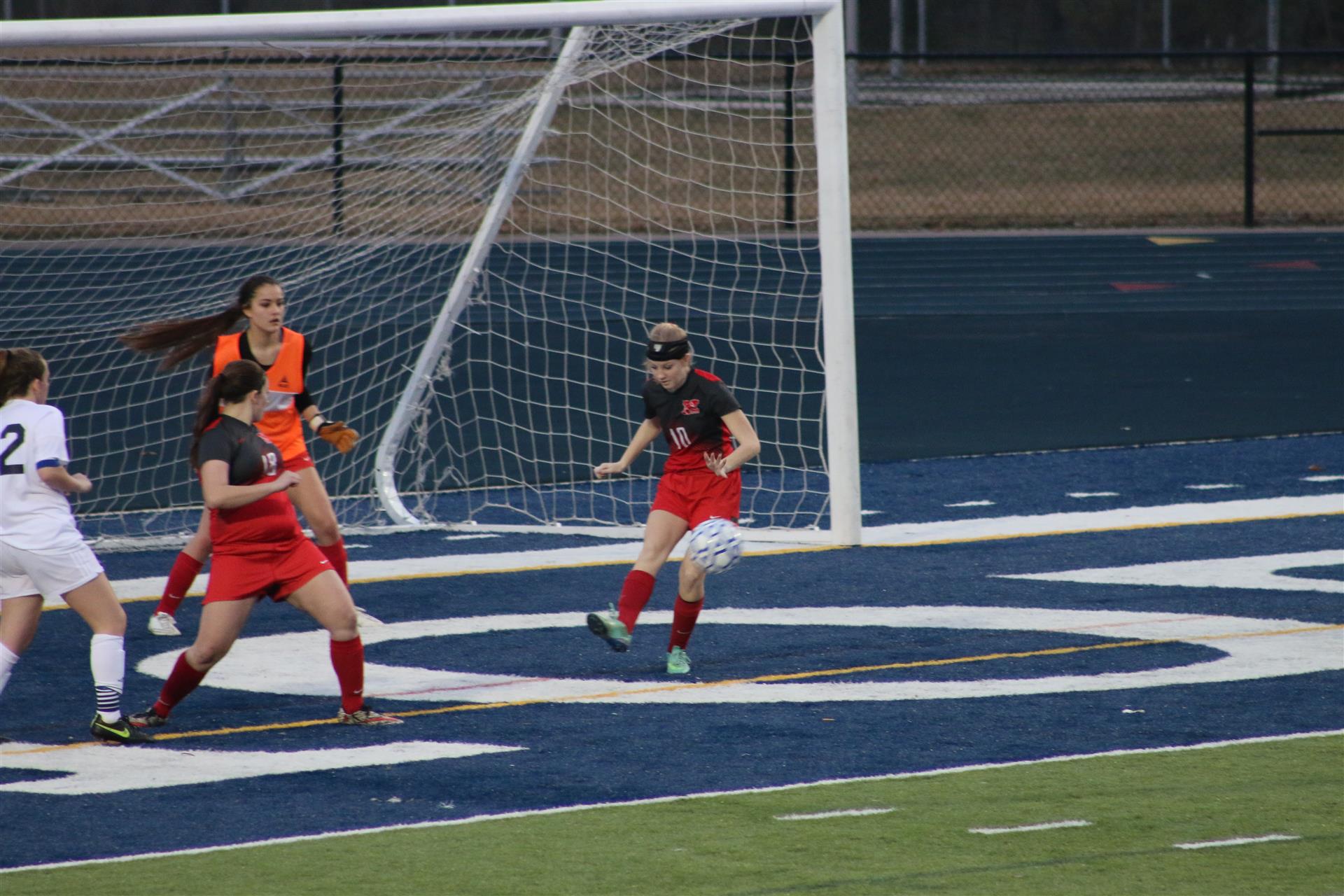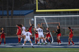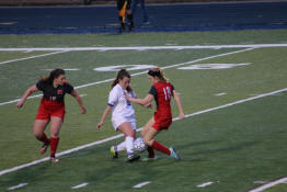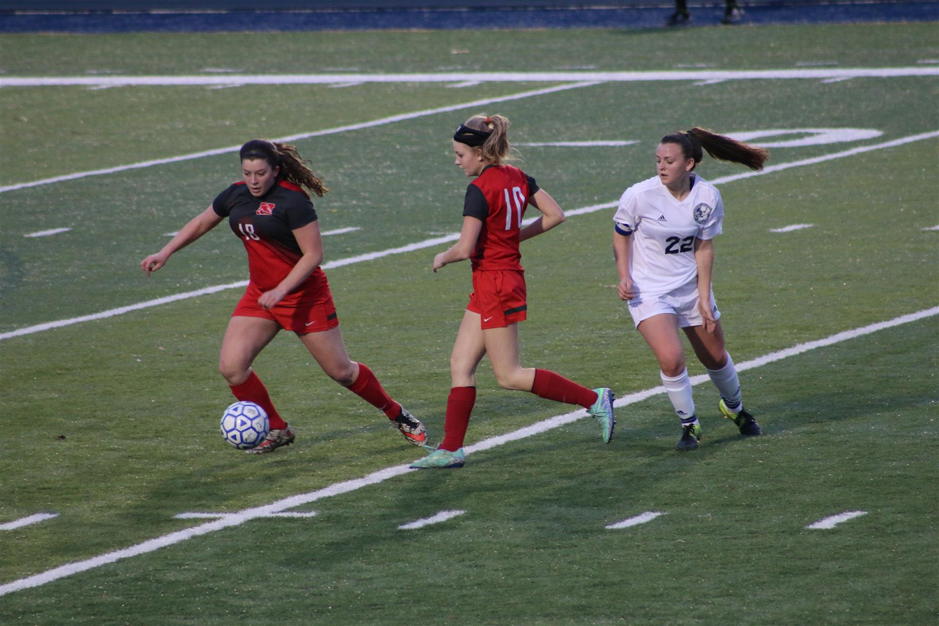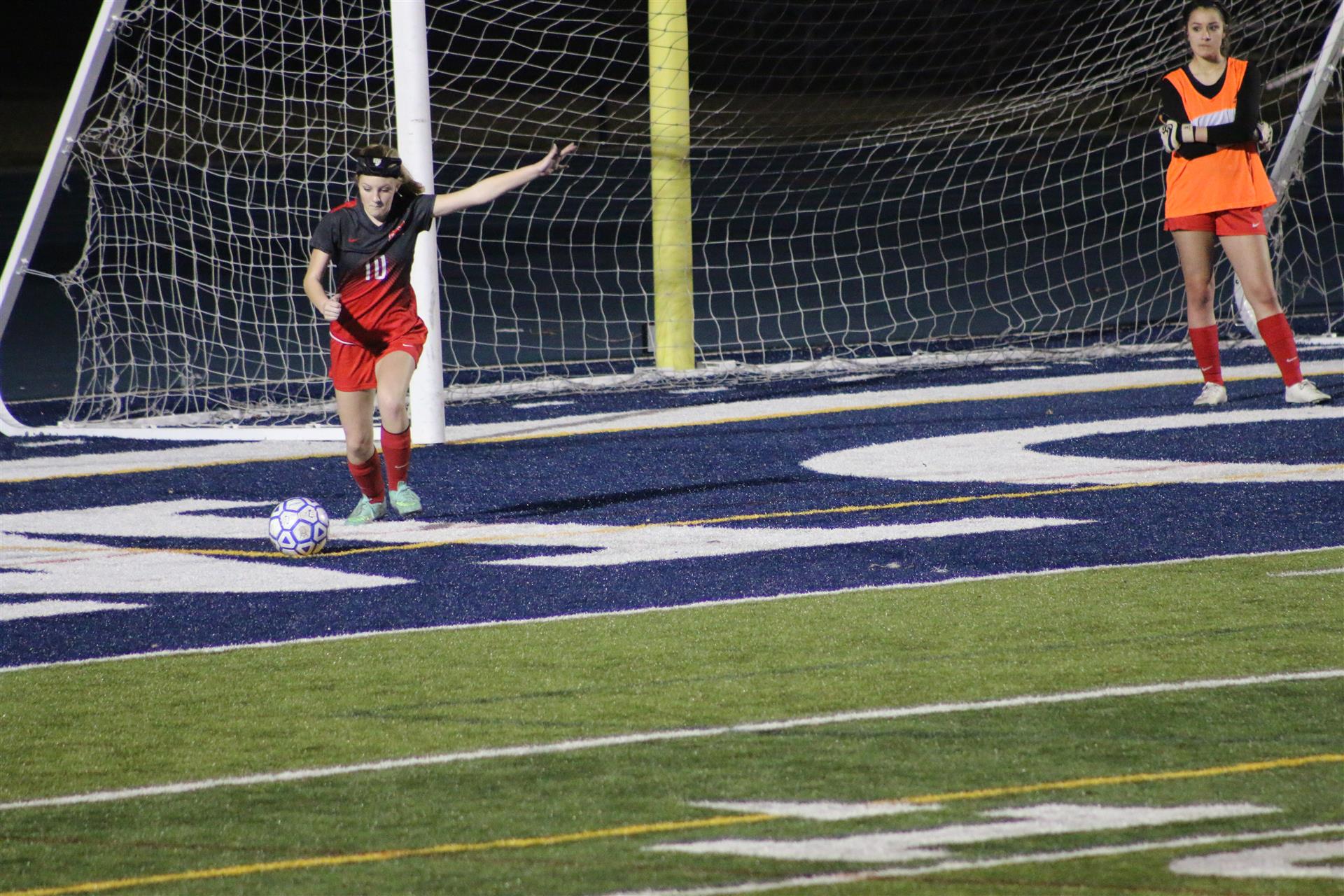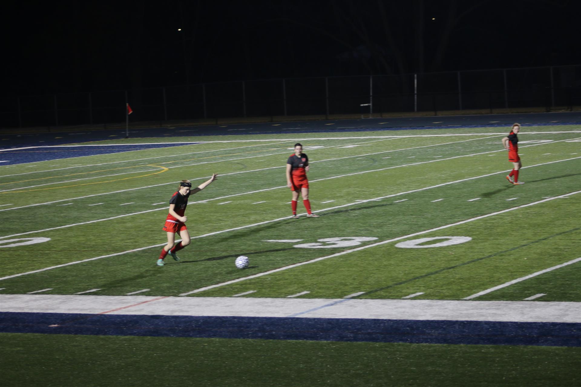 Sam and her Holly Bronchos teammates in the pregame huddle