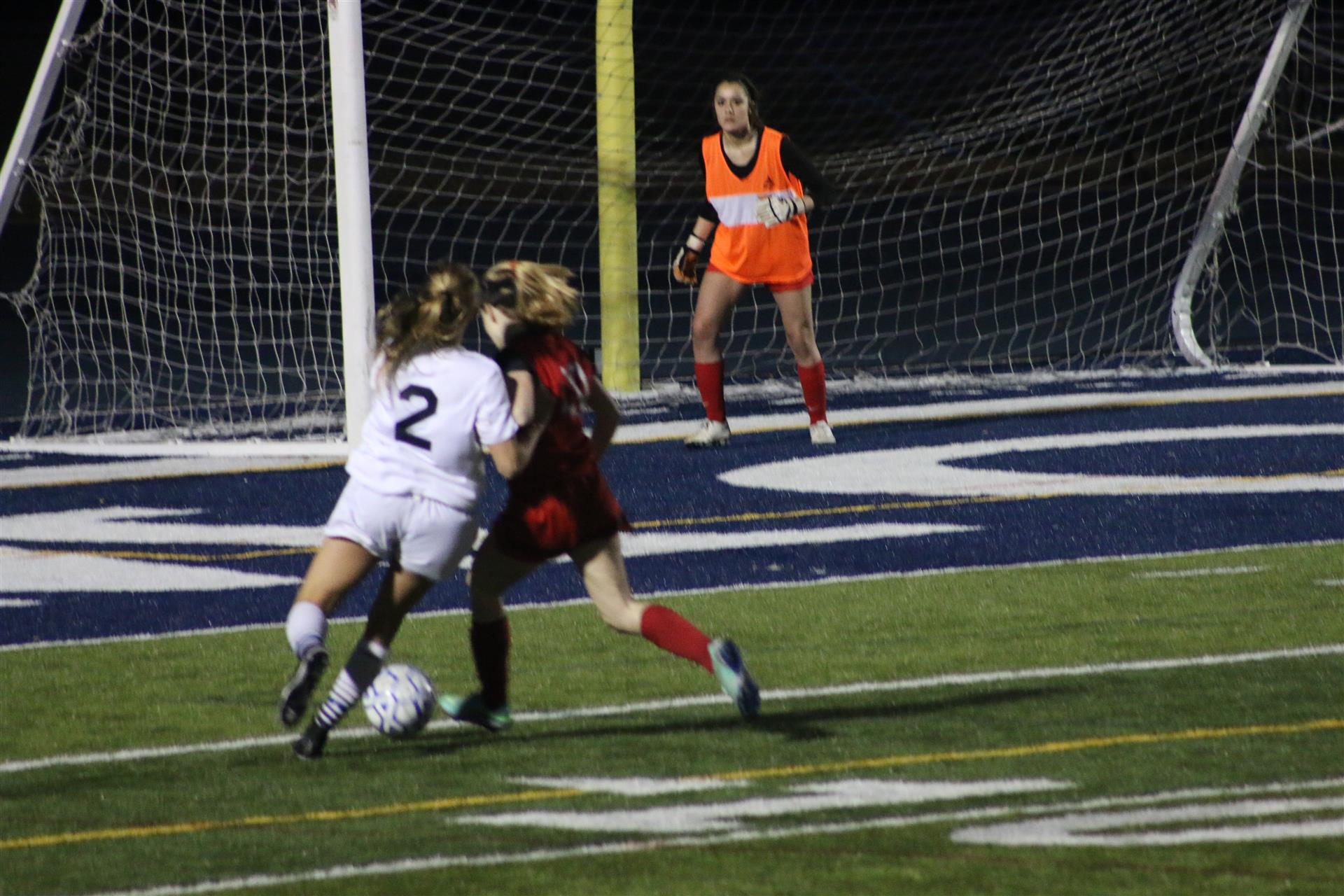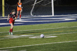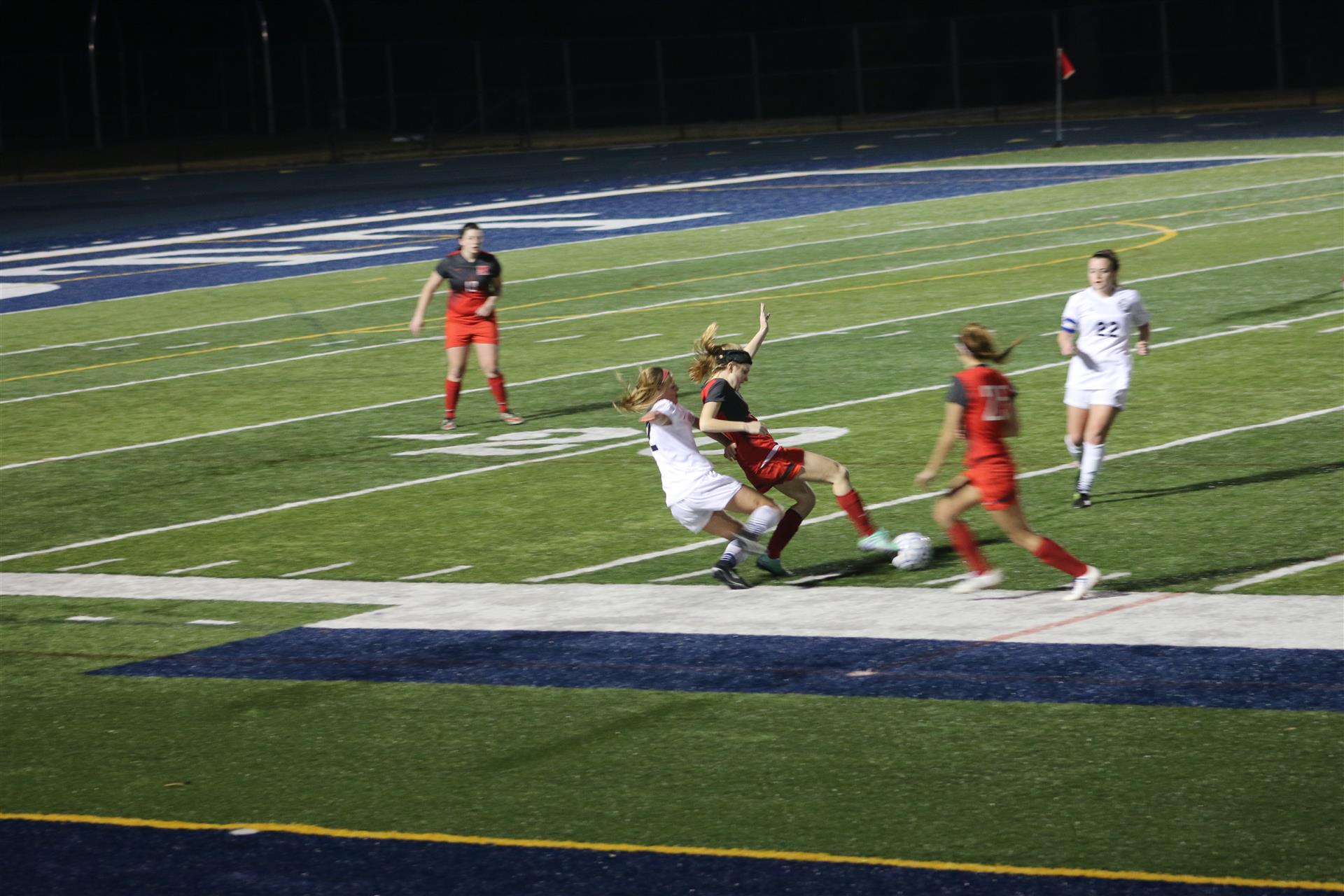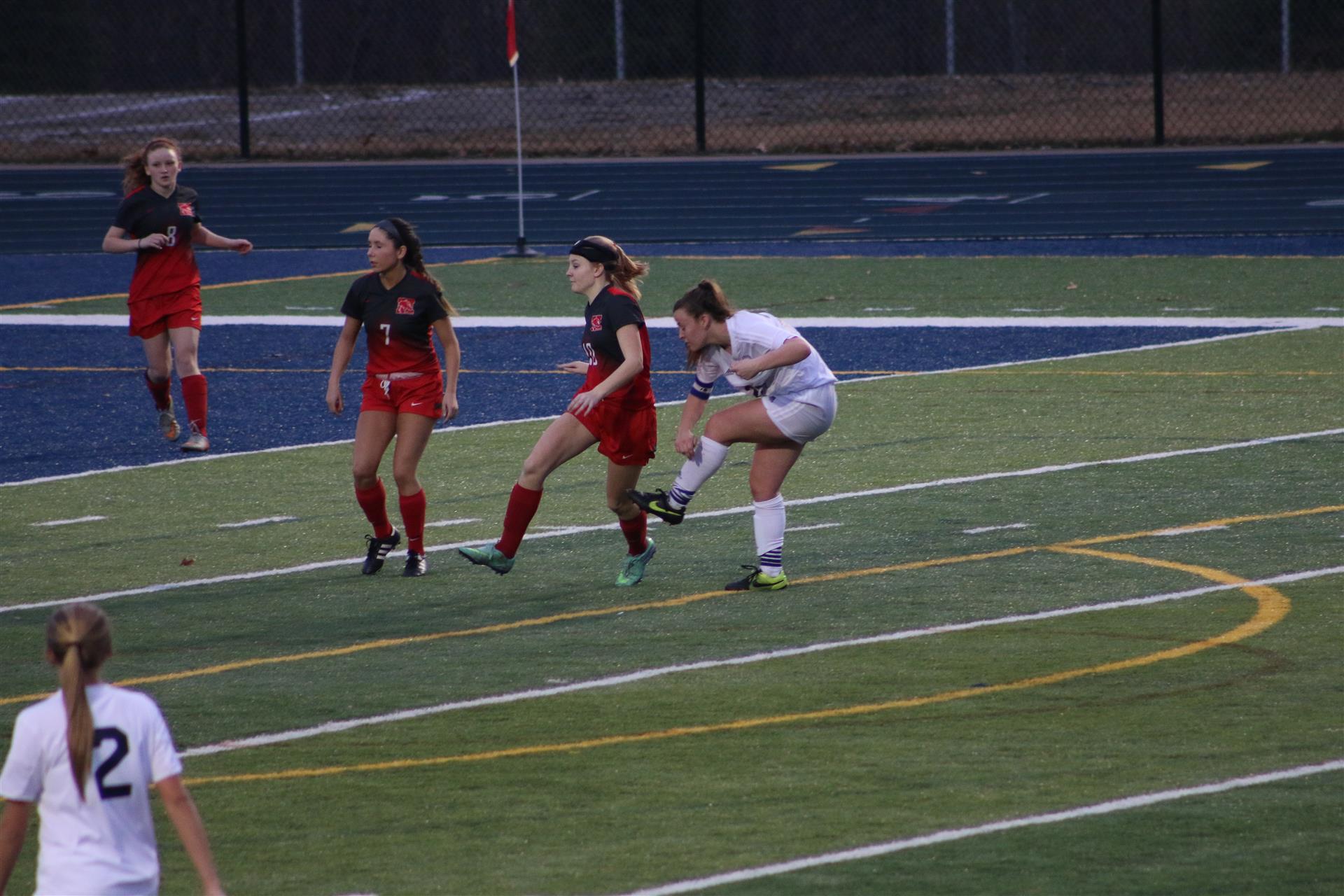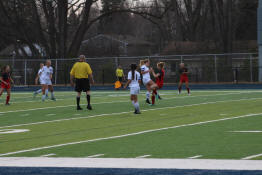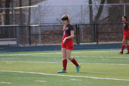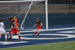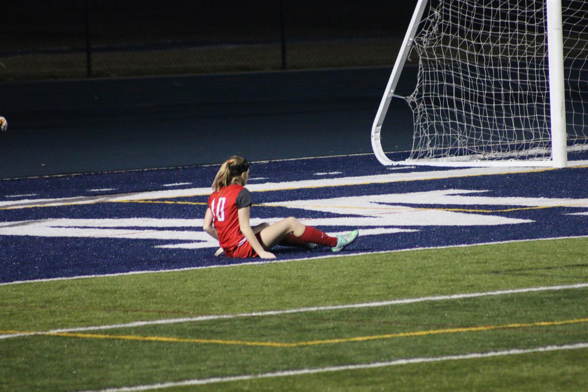 Sam and her Holly Bronchos teammates in the pregame huddle